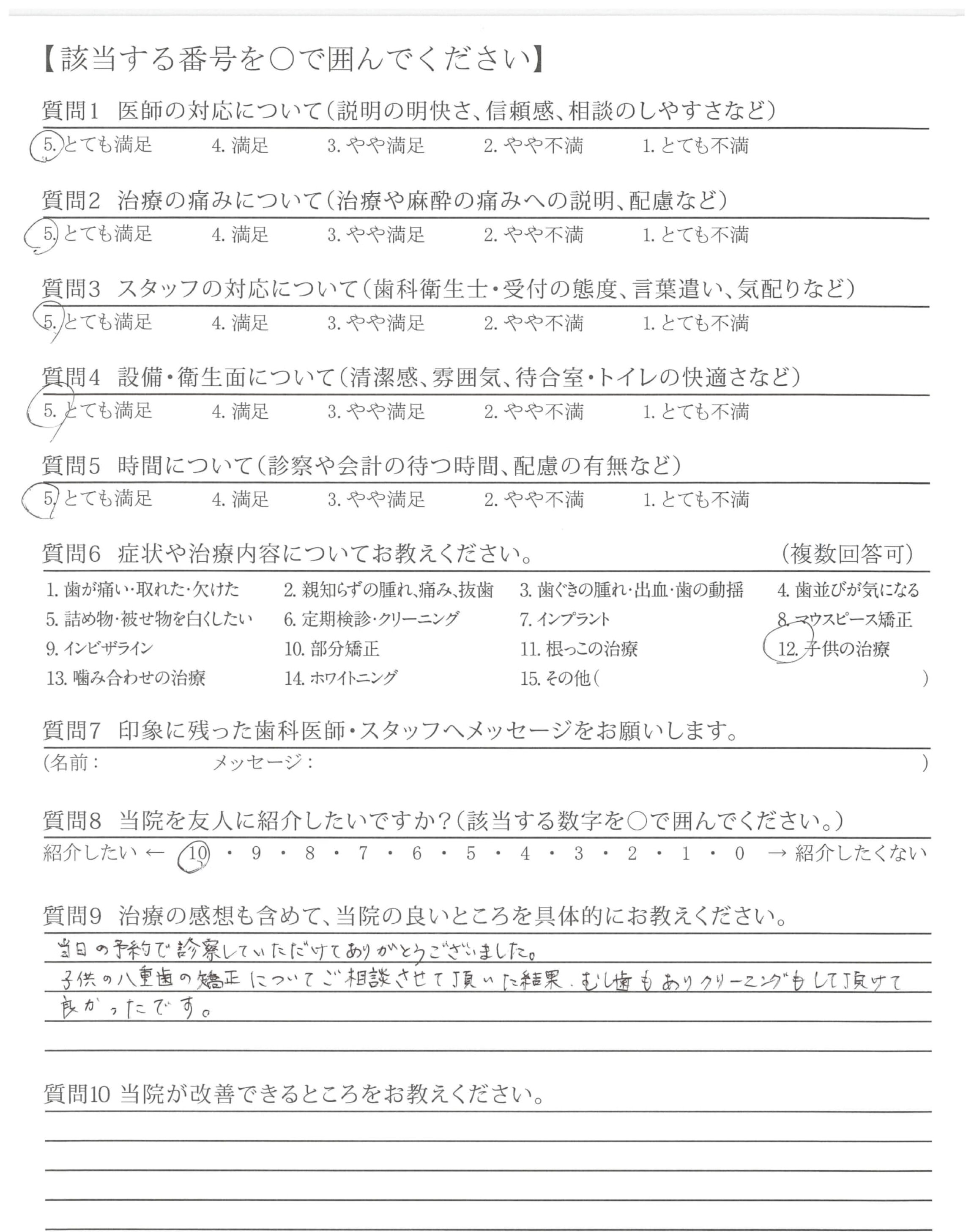 子供の八重歯の矯正についてご相談させて頂いた結果、むし歯もありクリーニングもして頂けて良かったです。