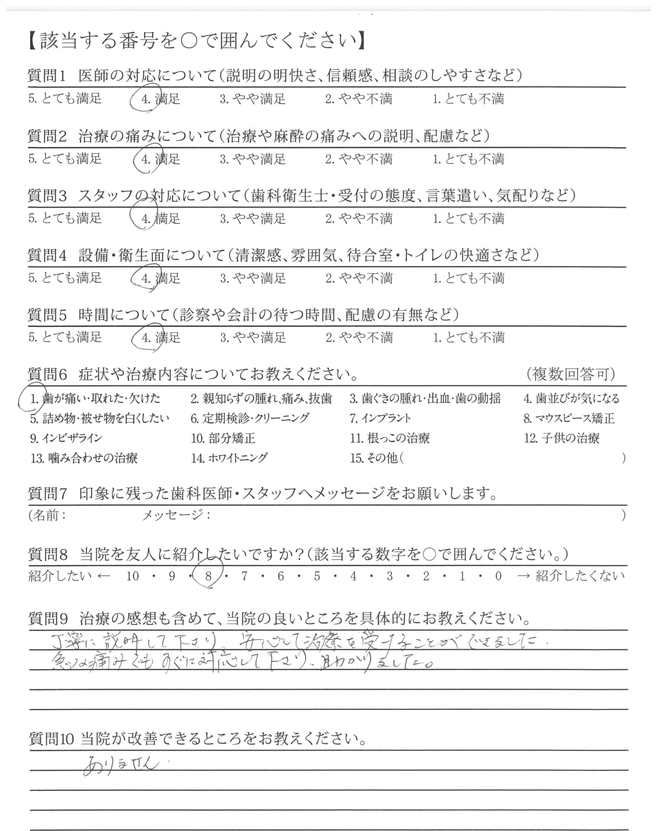 | 歯科医師の対応 | ![]() ![]() ![]() ![]() 4.61 |