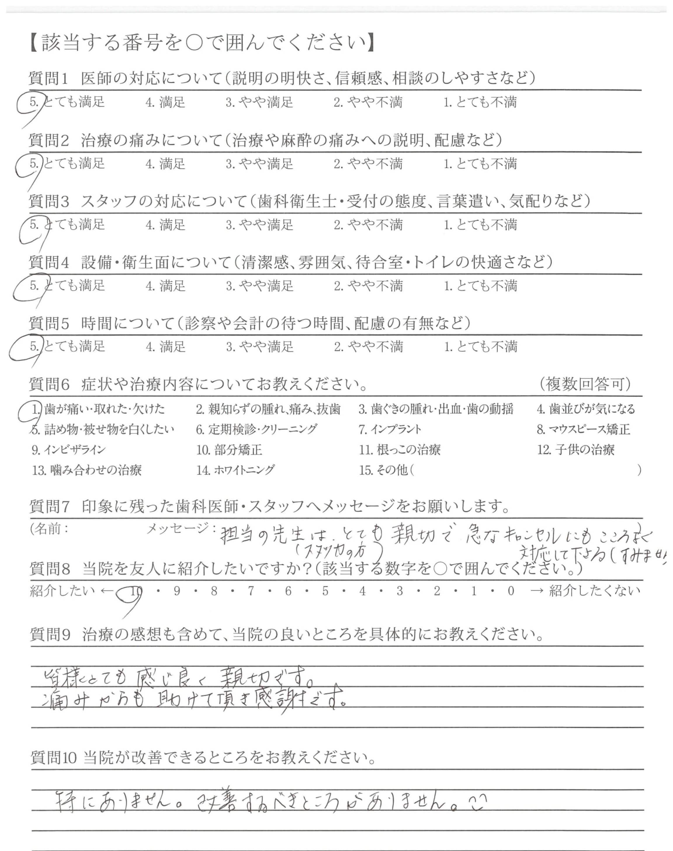 約束の予約時間を過ぎてしまうので、TELをしたのですが、その対応も良く、遅れてしまっても、本日の予約のままで治療してもらえてとても助かりました。
