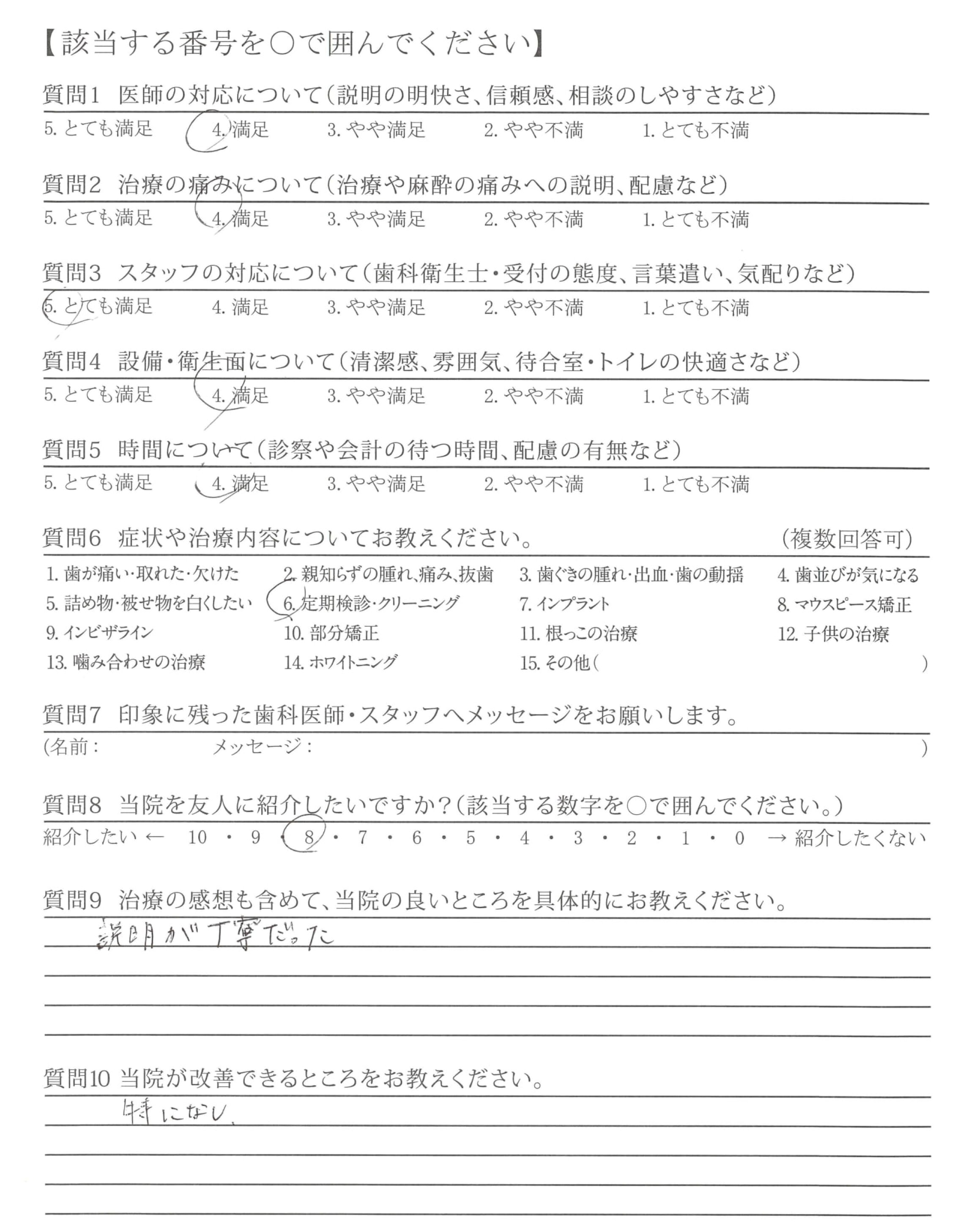 | 歯科医師の対応 | ![]() ![]() ![]() ![]() 4.61 |