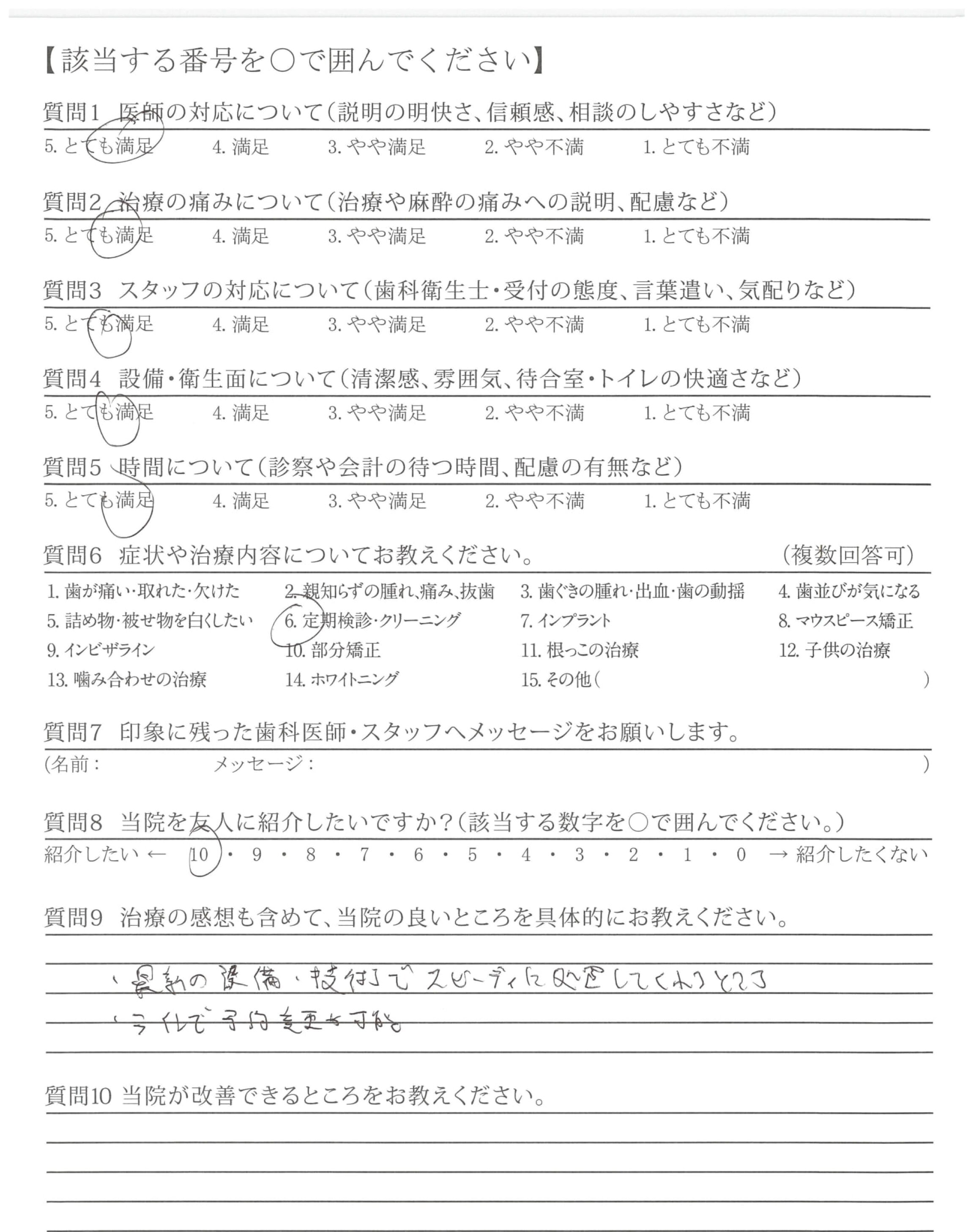 | 治療の痛みへの配慮 | ![]() ![]() ![]() ![]() 4.52 |