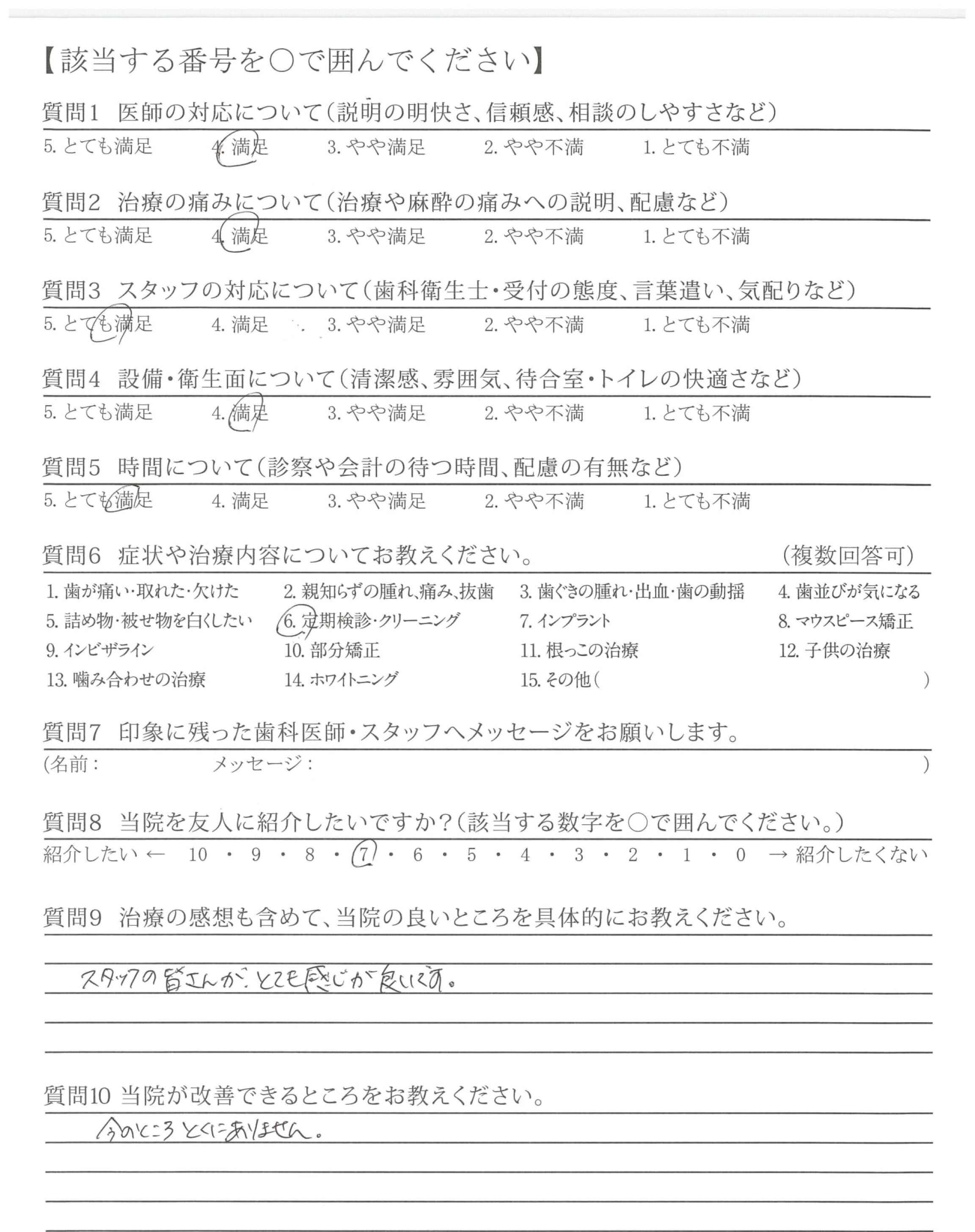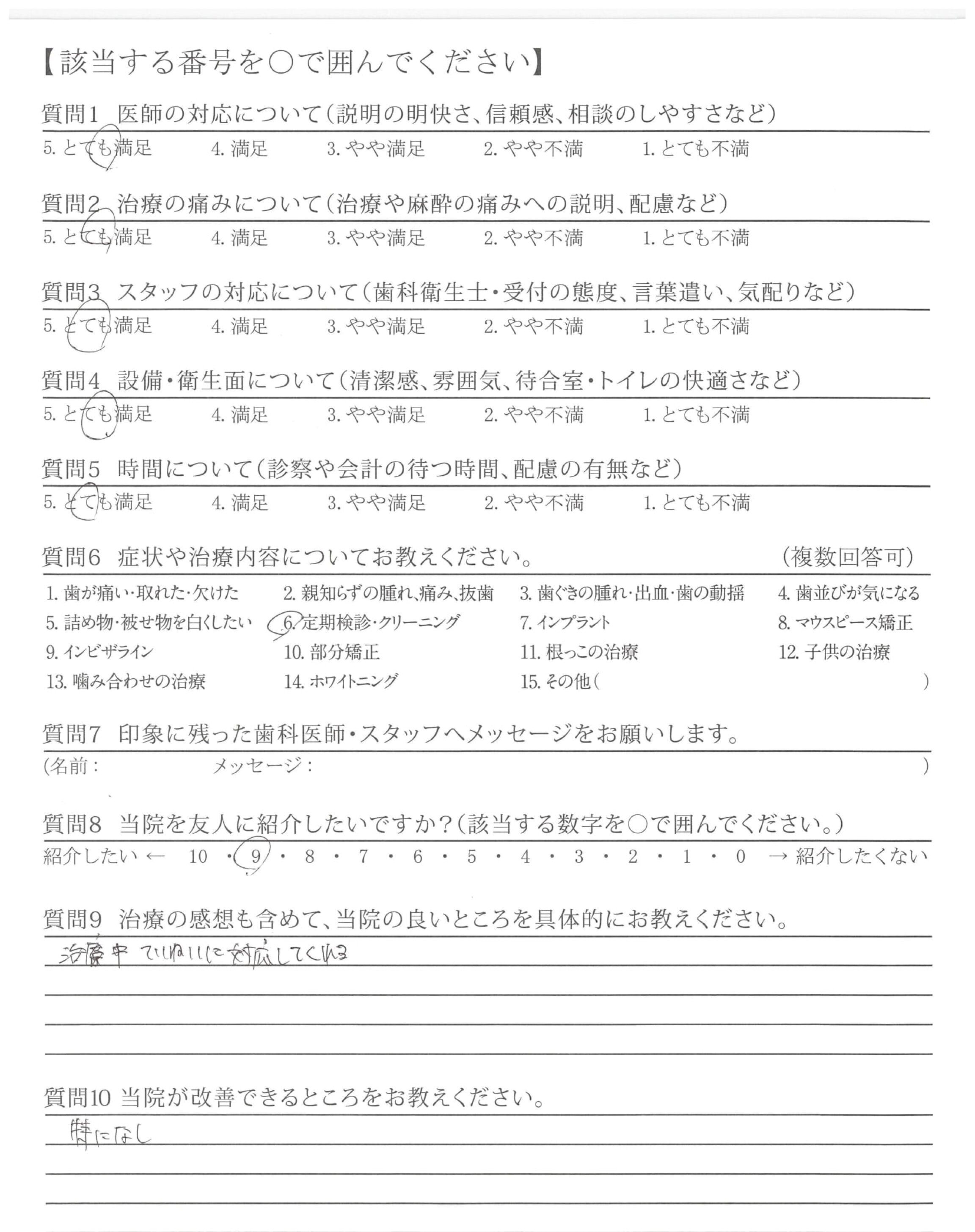 | 歯科医師の対応 | ![]() ![]() ![]() ![]() 4.61 |