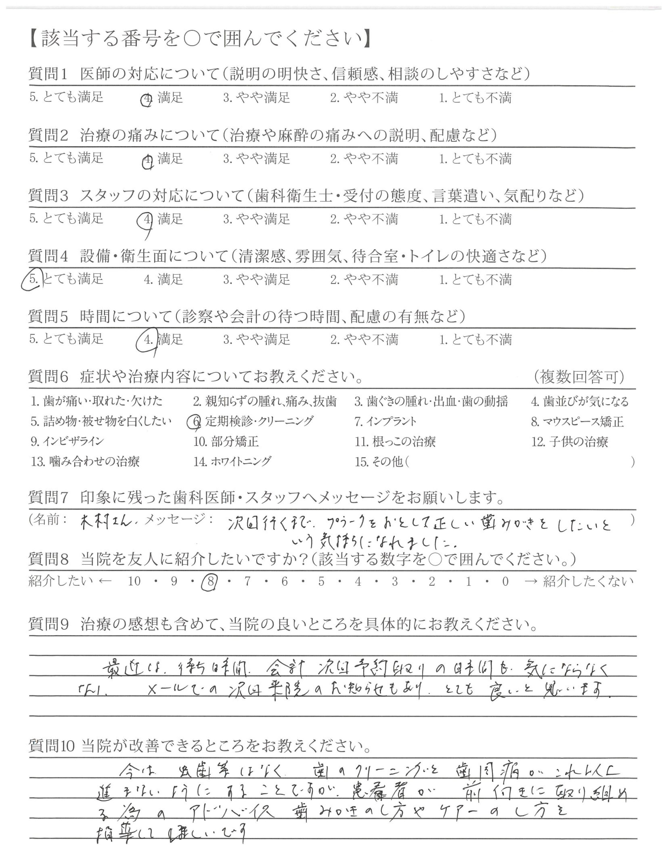当サイトに掲載しているアンケートは、第三者機関である日本歯科医療評価機構が医院の協力を得て直接患者さんへ調査を行ったもので、医院では操作のできない客観的な評価です。毎週患者さんから届くアンケート結果を集計し、このページを更新しています。