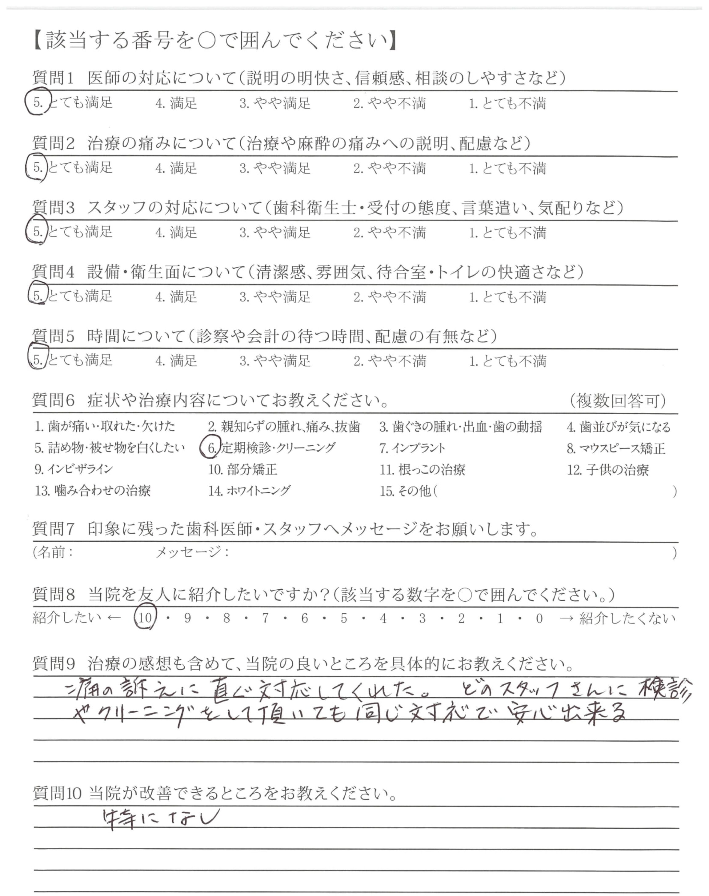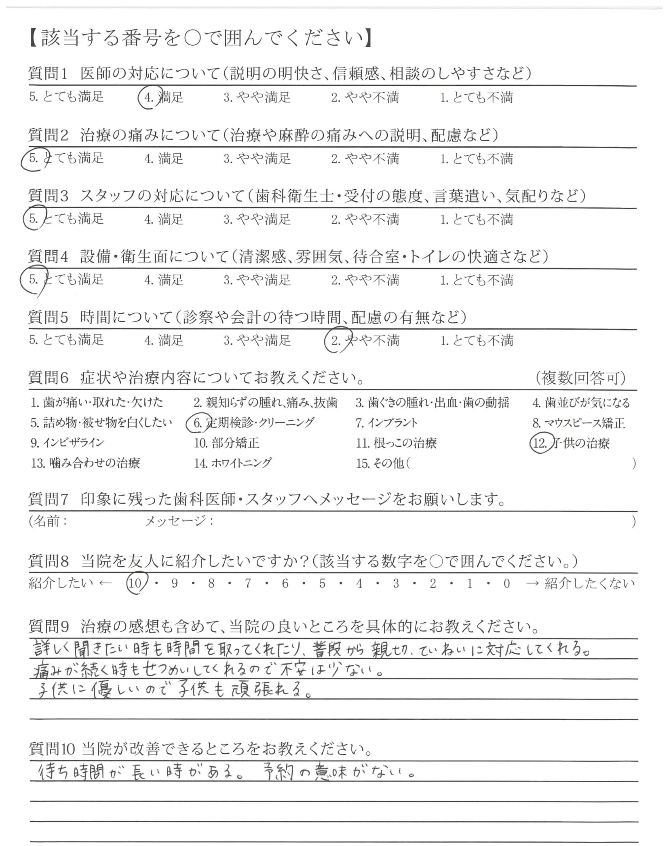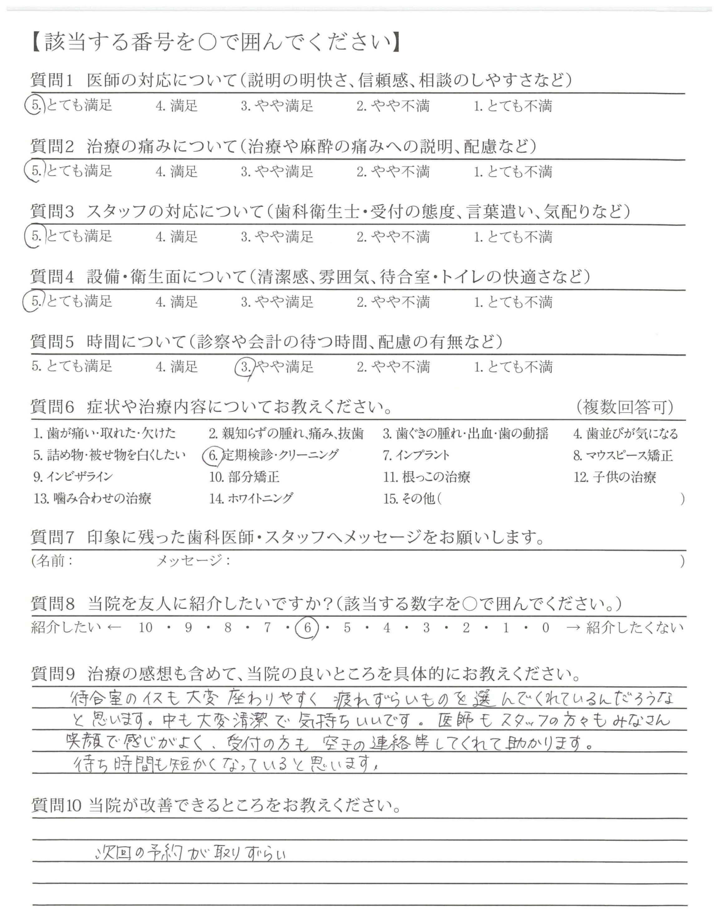 いつも説明がわかりやすくて、こちらの不安をよくきいてくれます!!ありがとうございます。