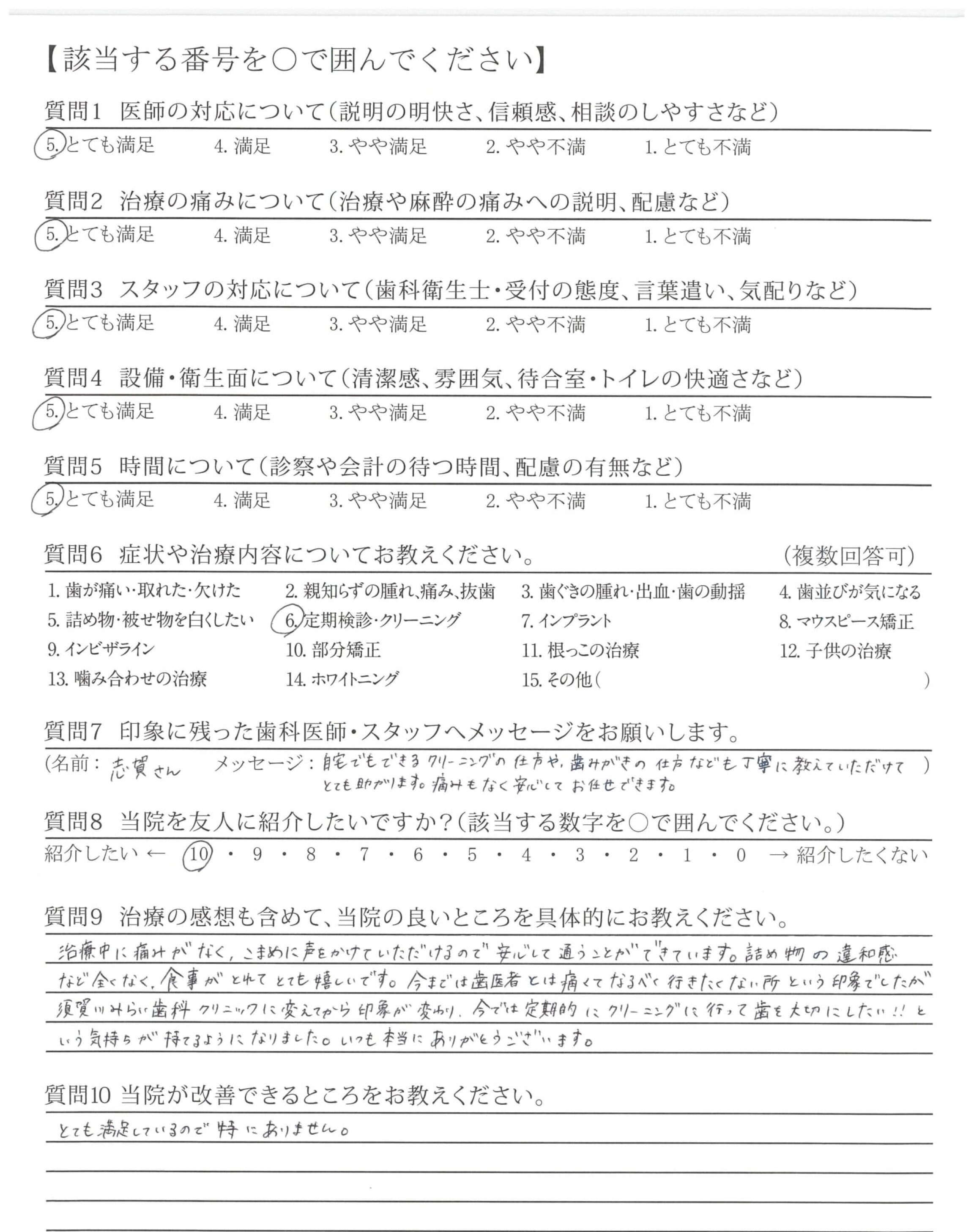 自宅でもできるクリーニングの仕方や、歯みがきの仕方なども丁寧に教えていただけてとても助かります。痛みもなく安心してお任せできます。