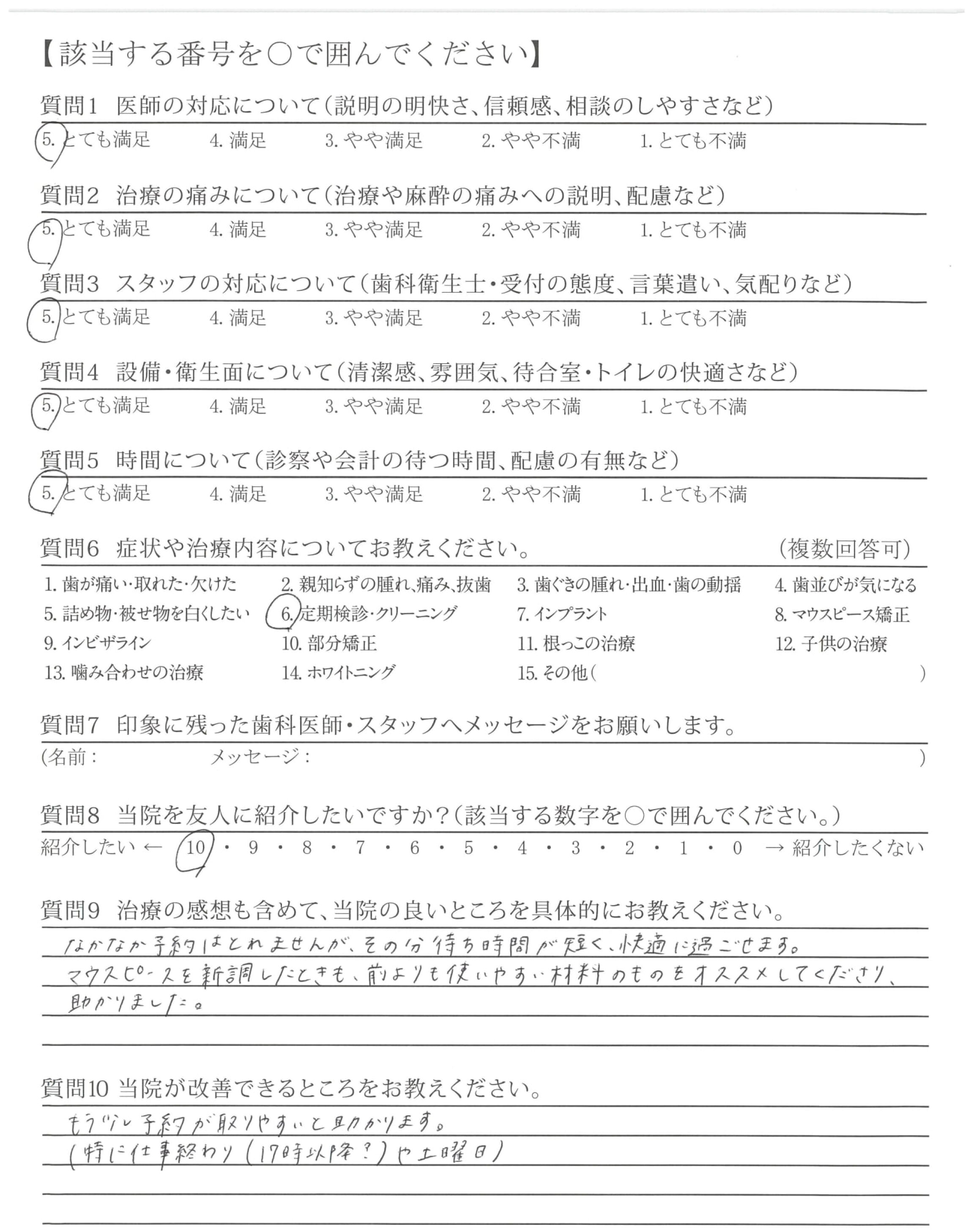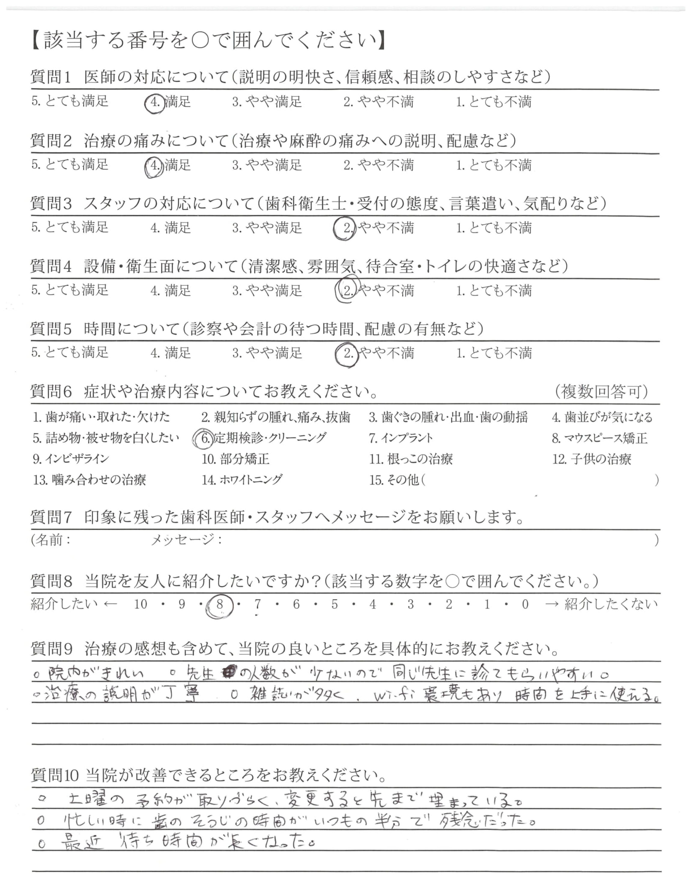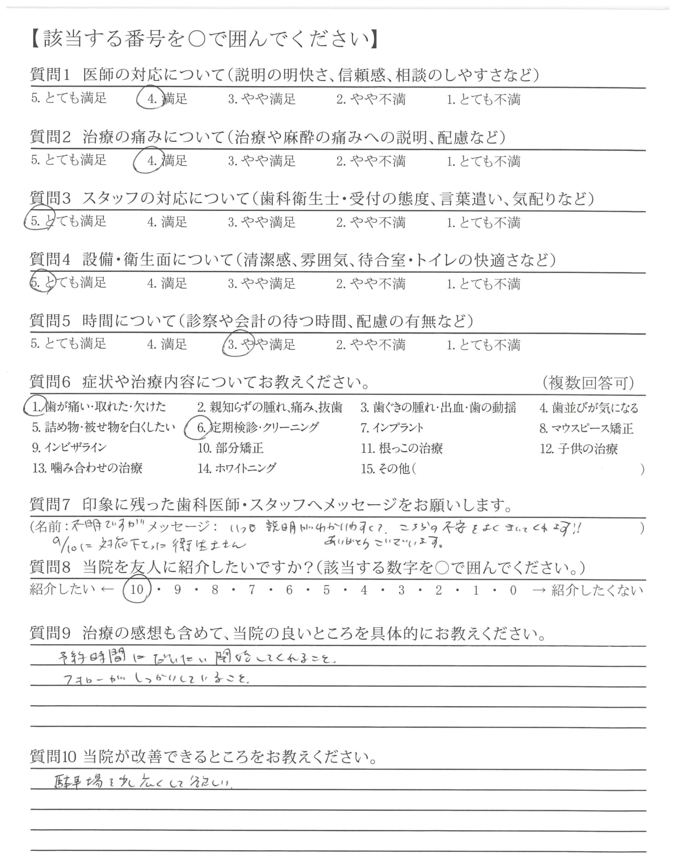 不明ですが9/10に対応下さった衛生士さん