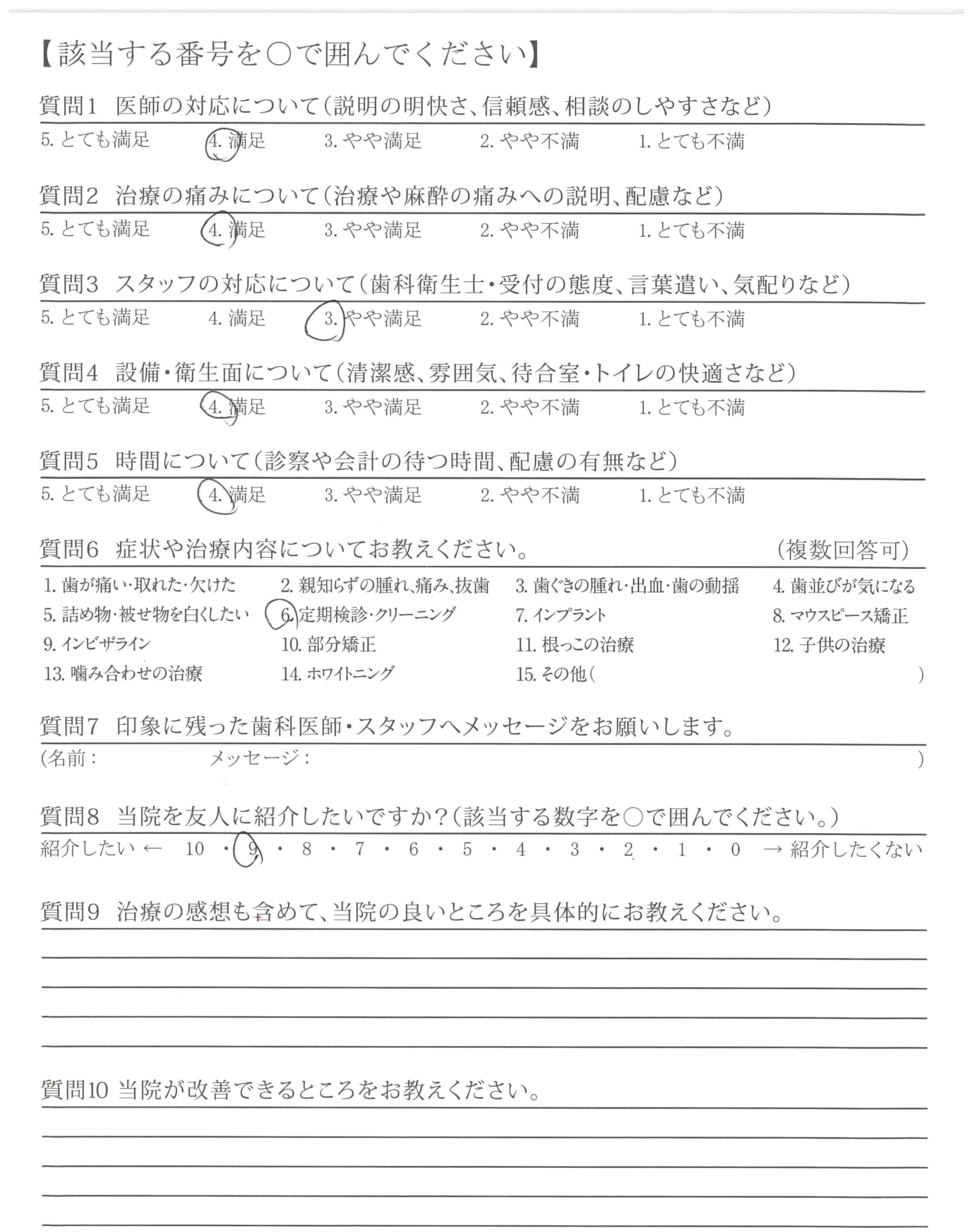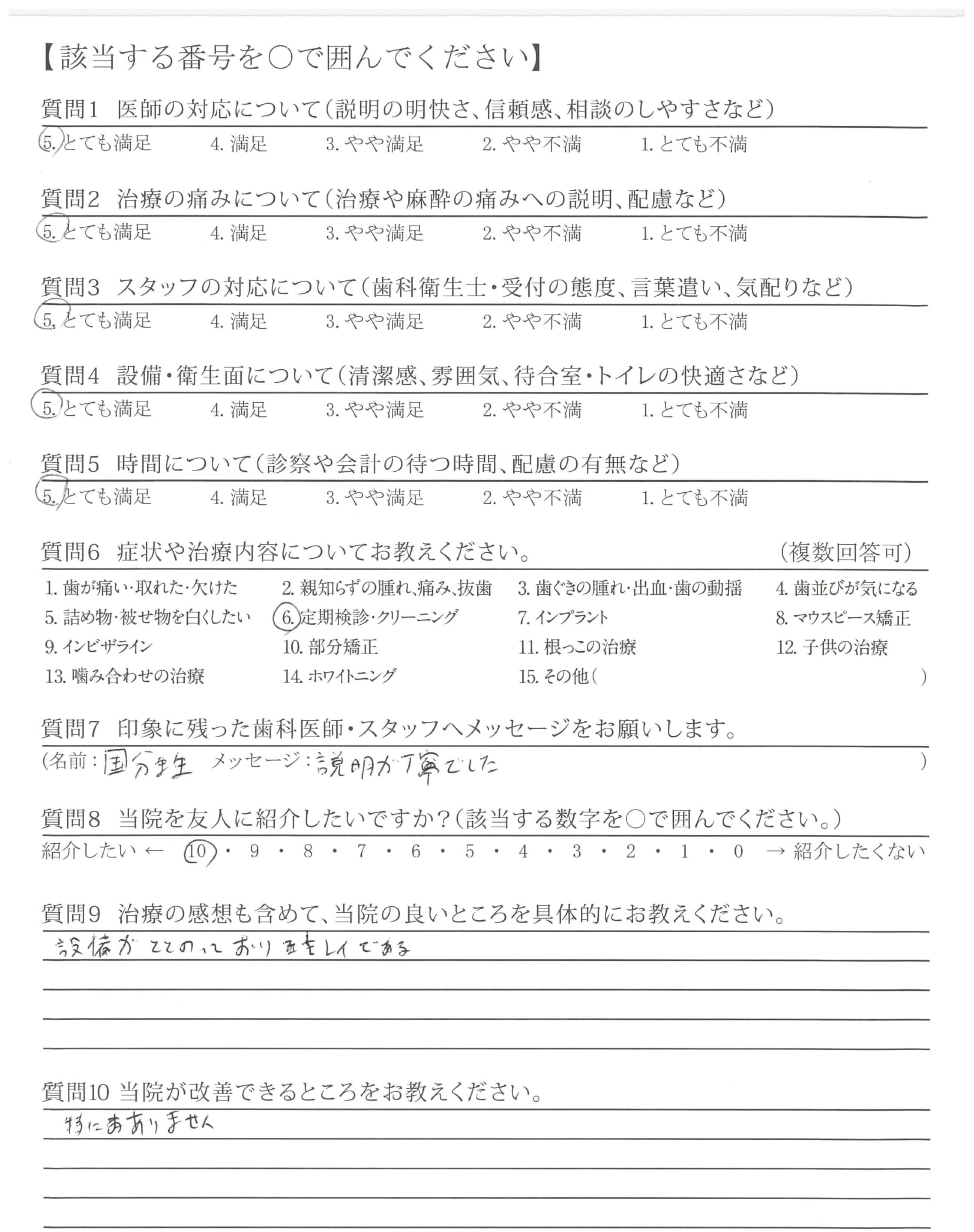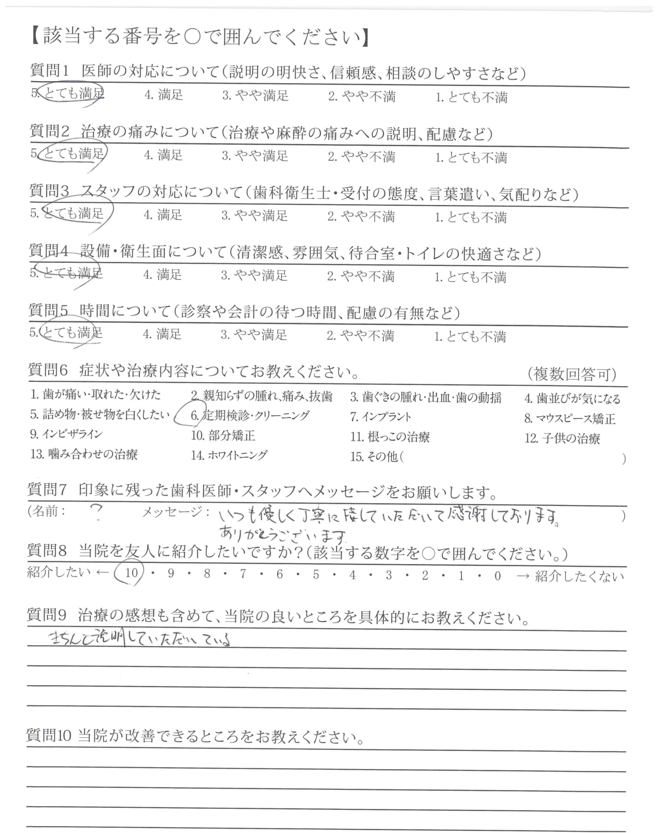 定期的に歯の状態を診て頂けることも今までになかった事なので今後も宜しくお願いしたいと考えています。
