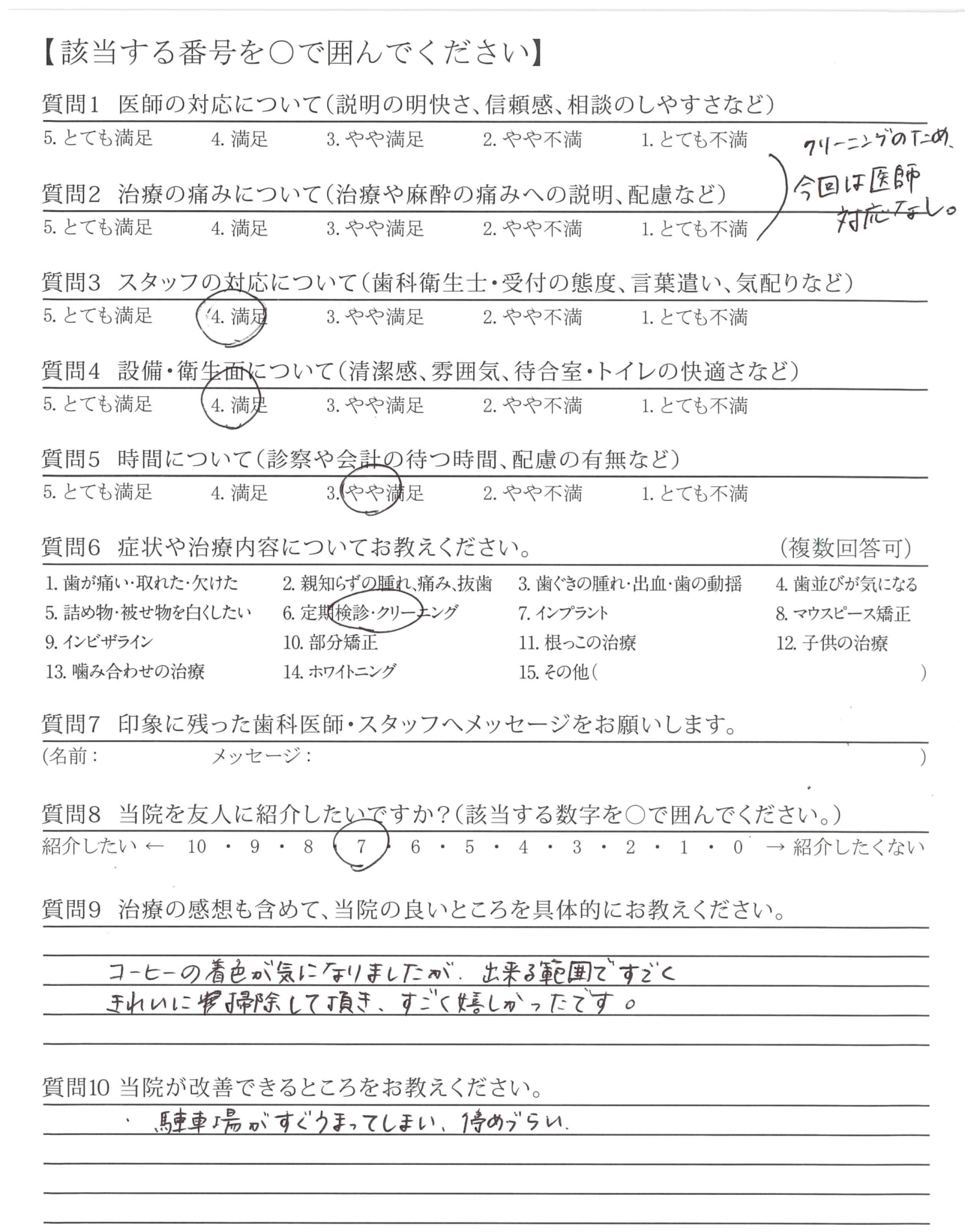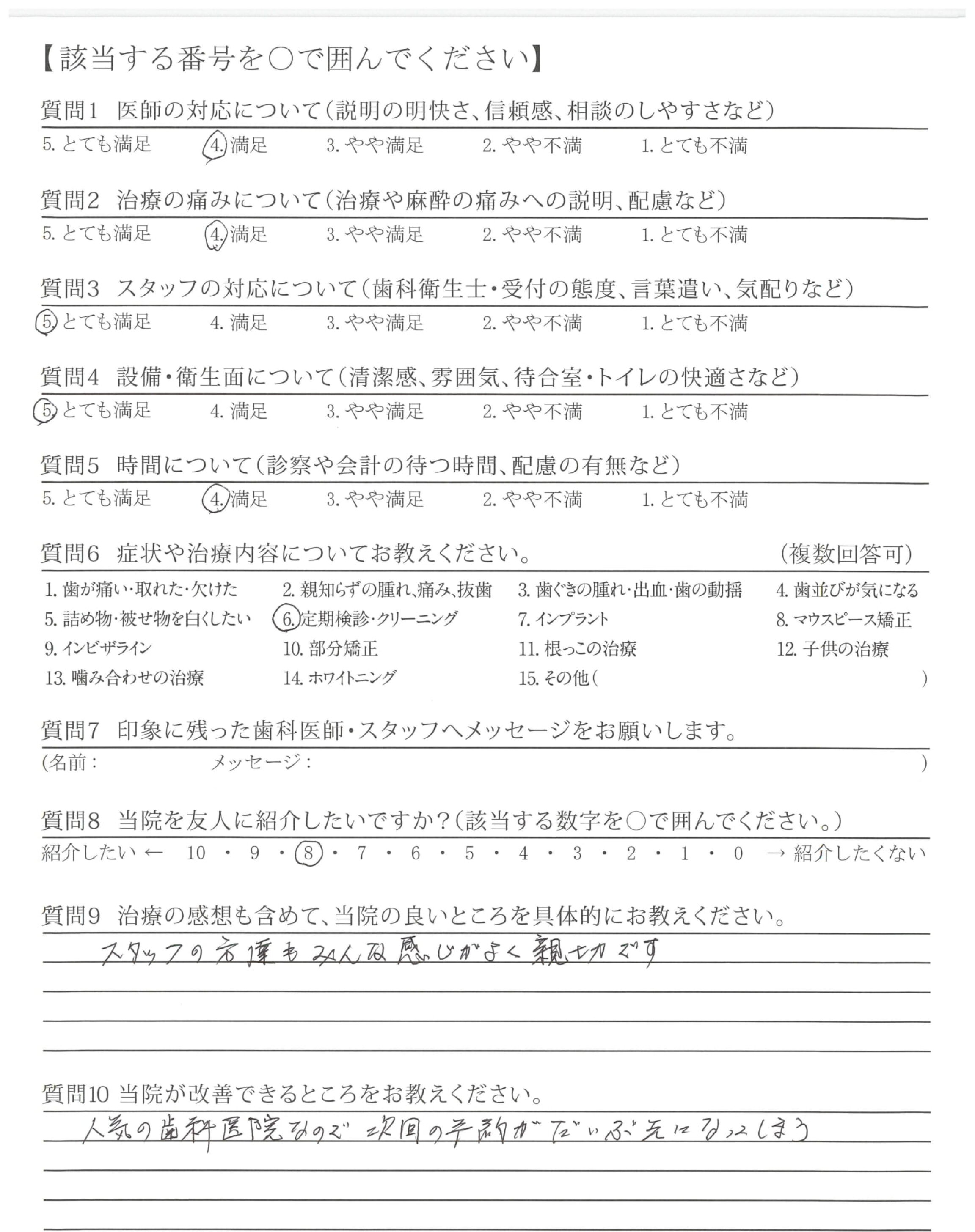 先日のクリーニングをしていただいたスタッフのかたがとても優しくて良かったです