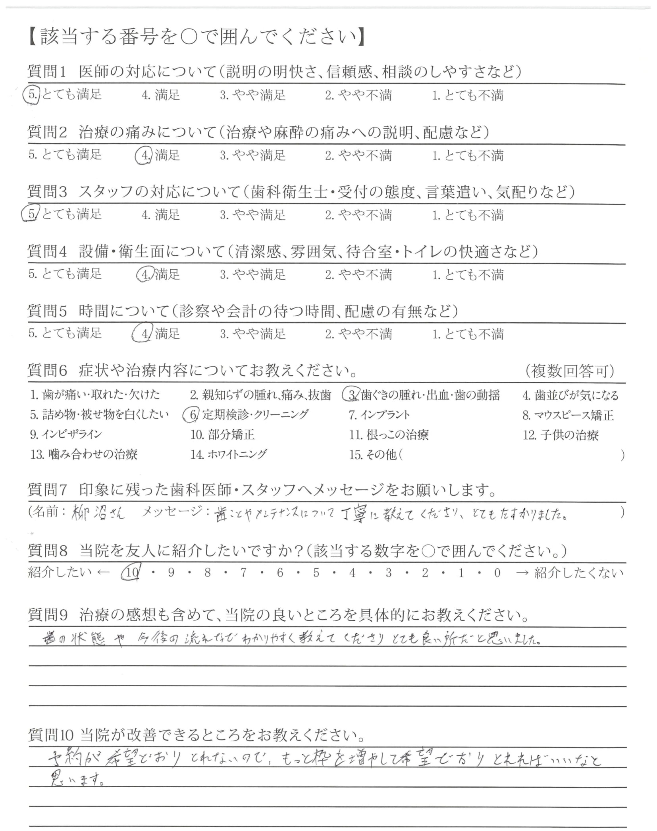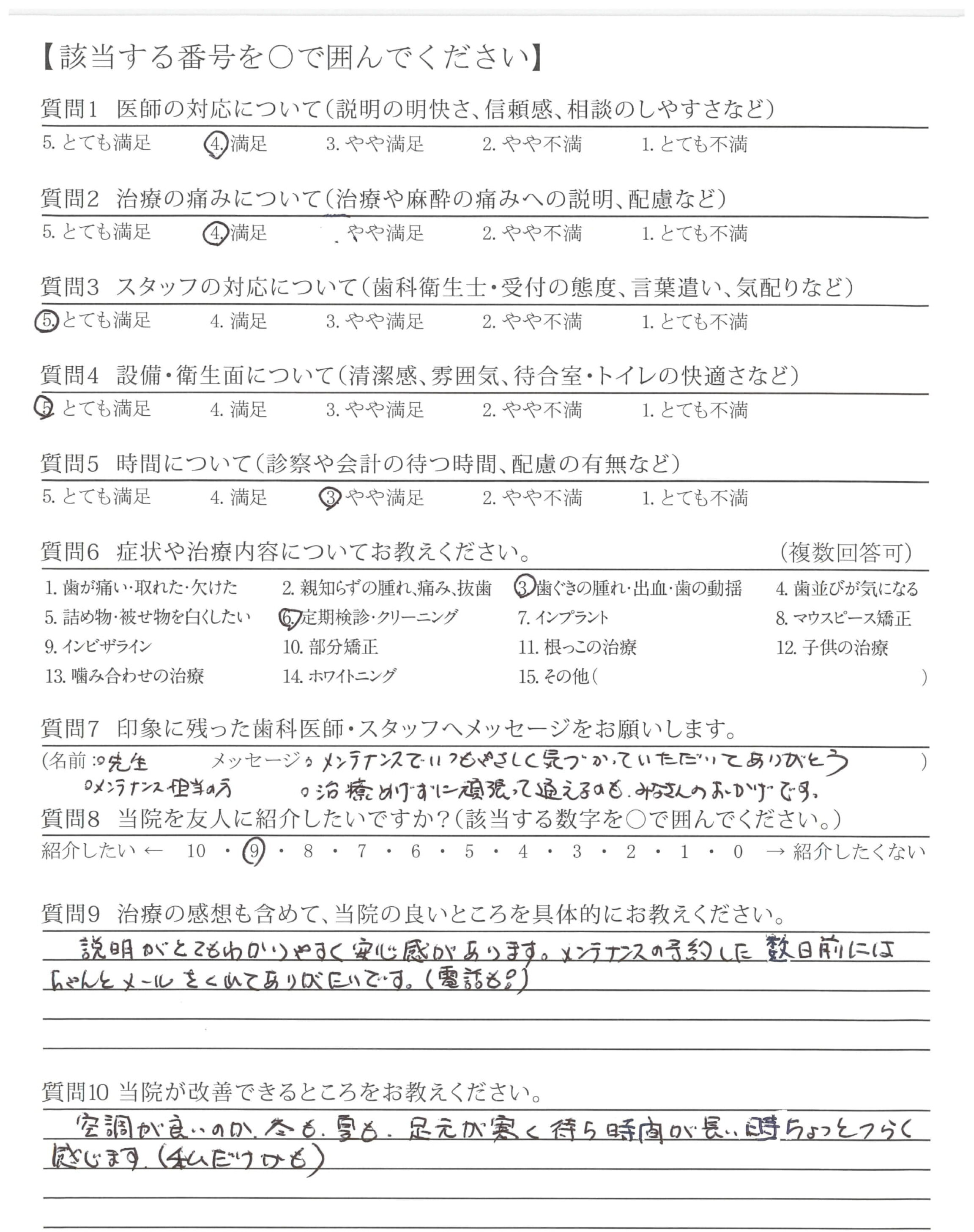 歯ことやメンテナンスについて丁寧に教えてくださり、とてもたすかりました。