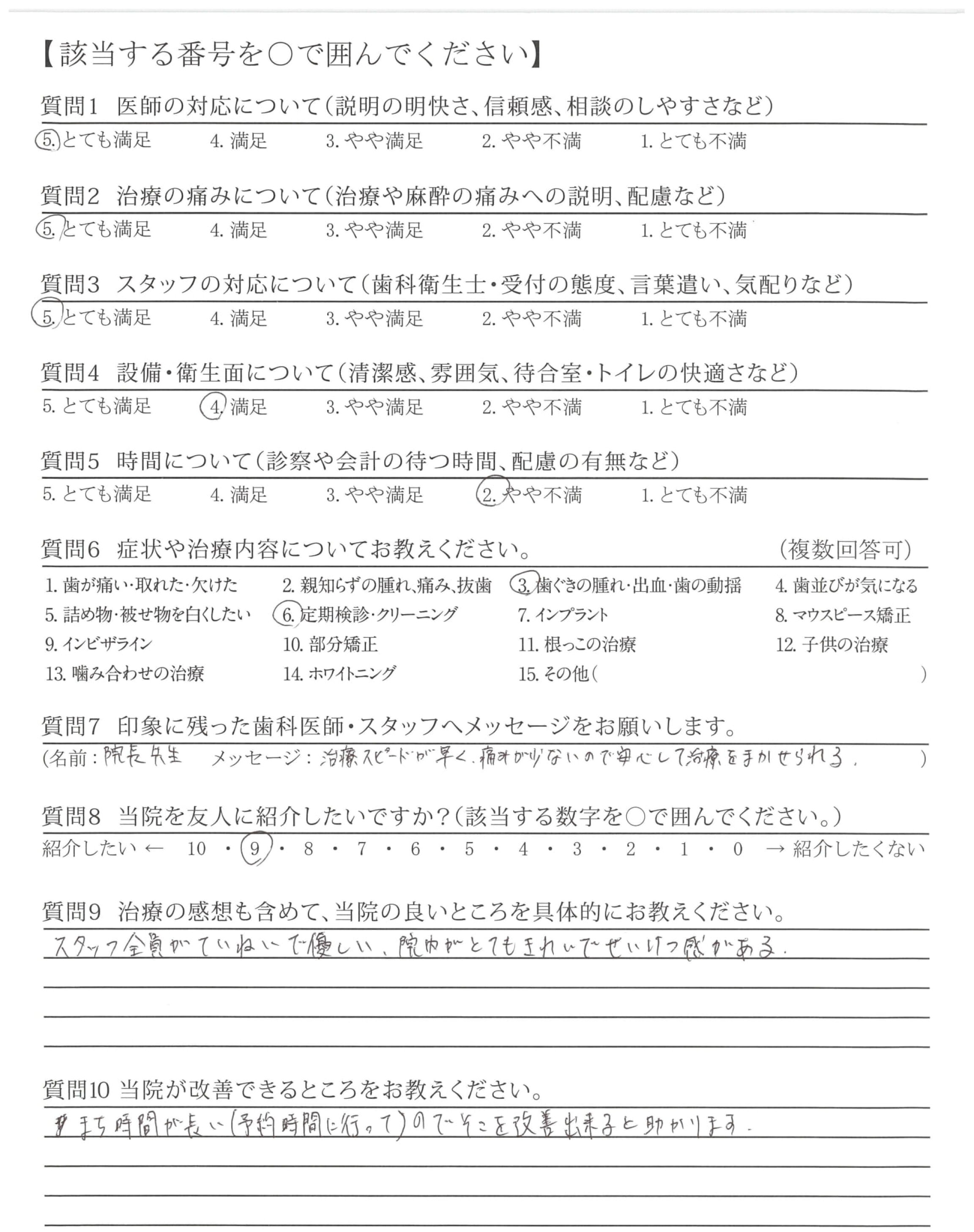 治療スピードが早く、痛みが少ないので安心して治療をまかせられる。
