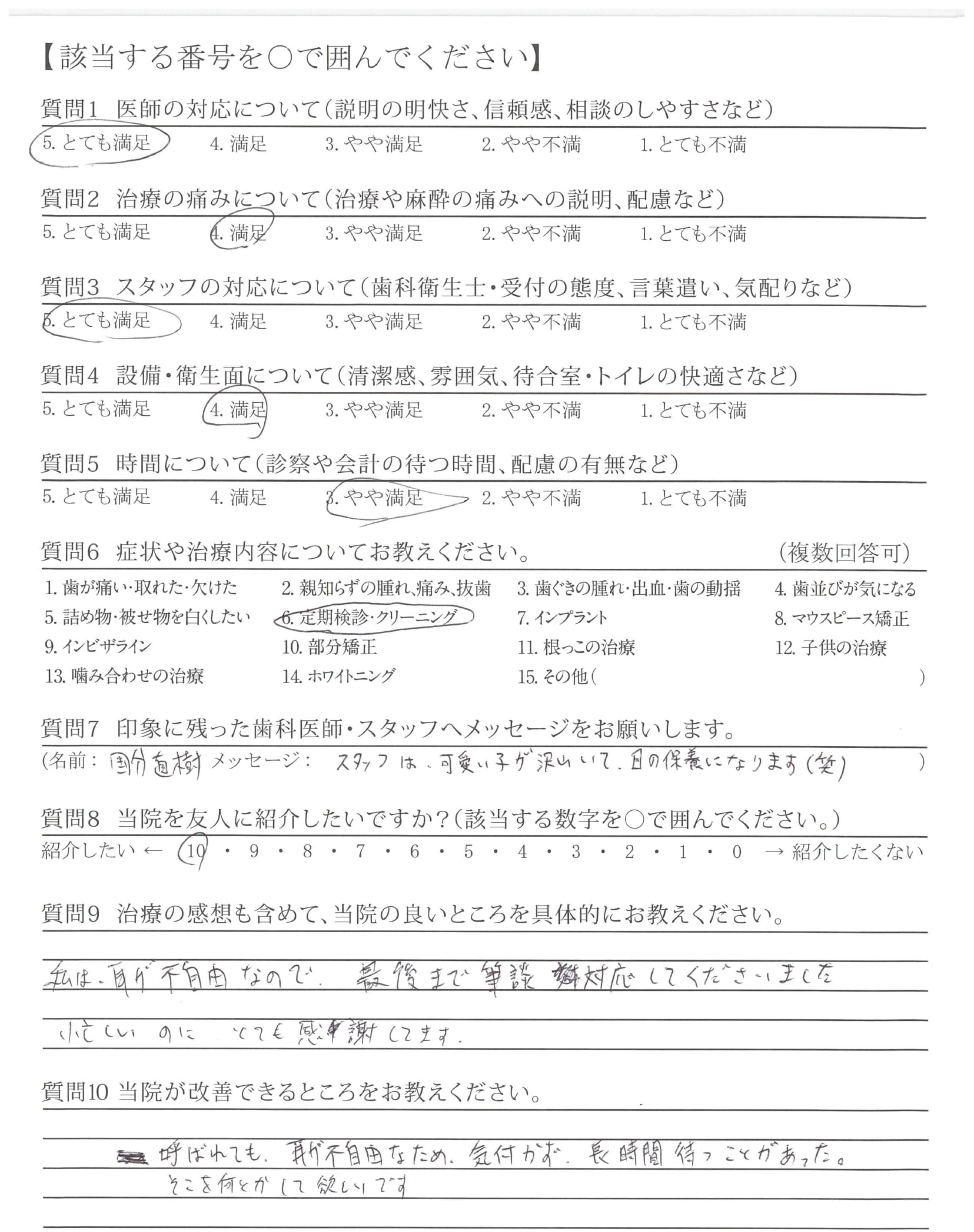 私は、耳が不自由なので、最後まで筆談対応してくださいました。忙しいのにとても感謝してます。
