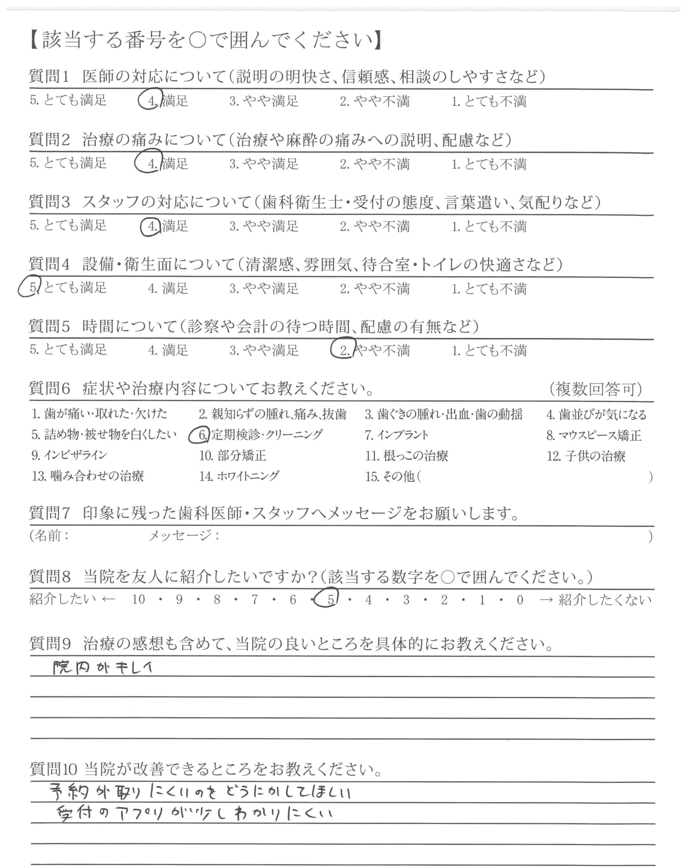 ・予約がつめこみすぎな気がする。そのため、ネットで予約の変更をしようとしても数ヶ月先まで×印で変更できない。LINEもあるが、その時に見れるとは限らない。