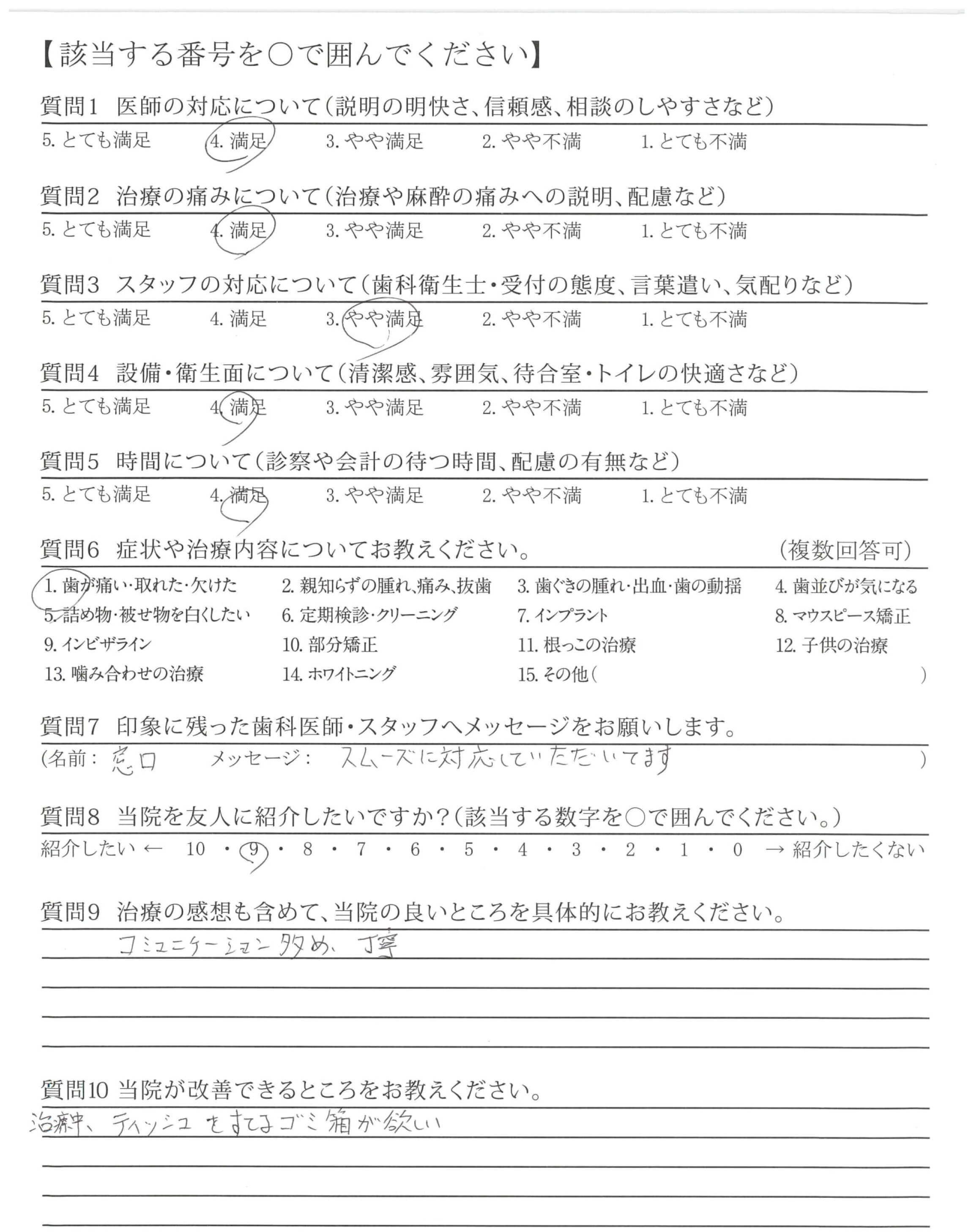 ・前の義歯が(ヒビが入って・・・)新しく作るのに、何度も(3~4週間に1回)3~4ヶ月かかっていて、不便を感じた。