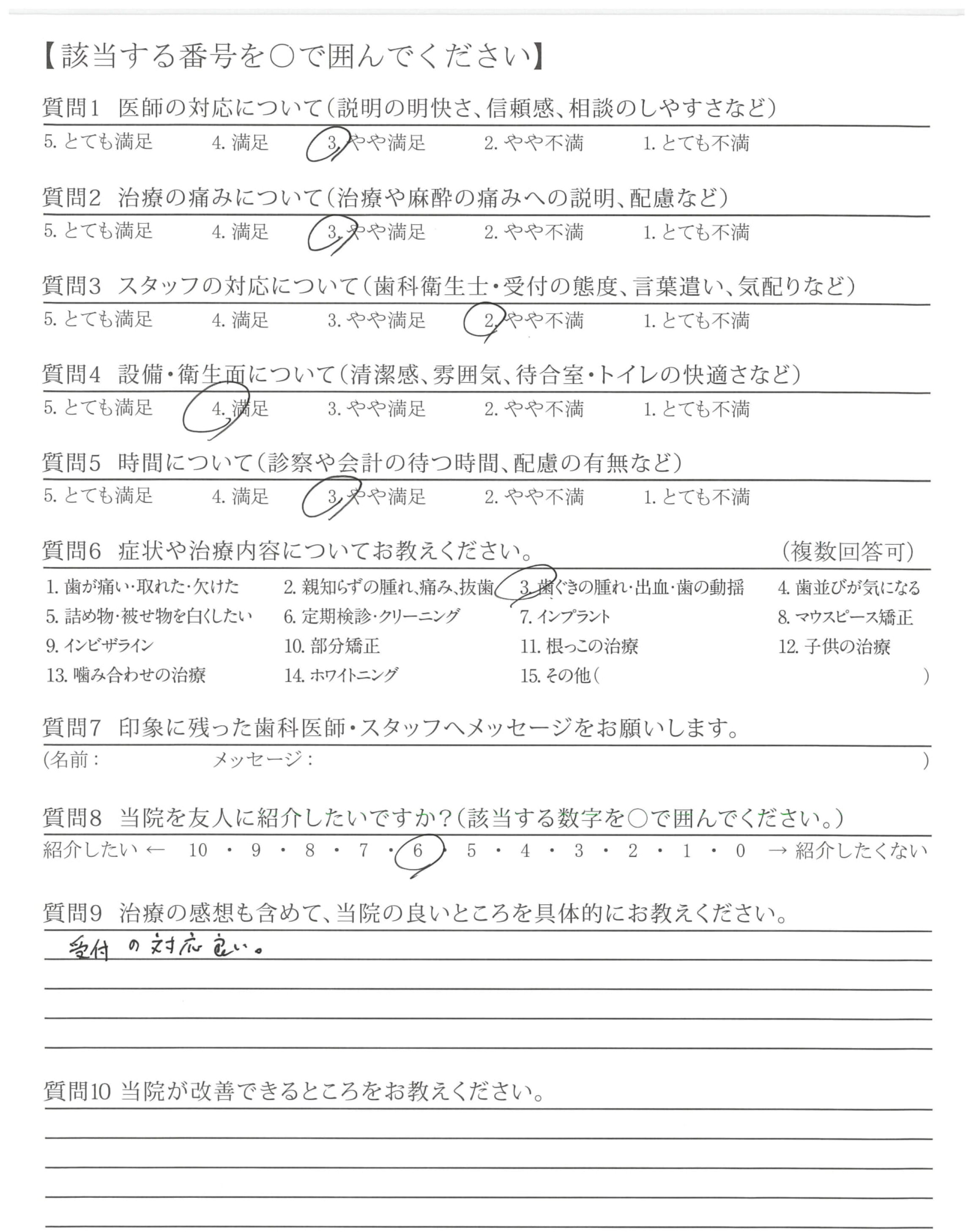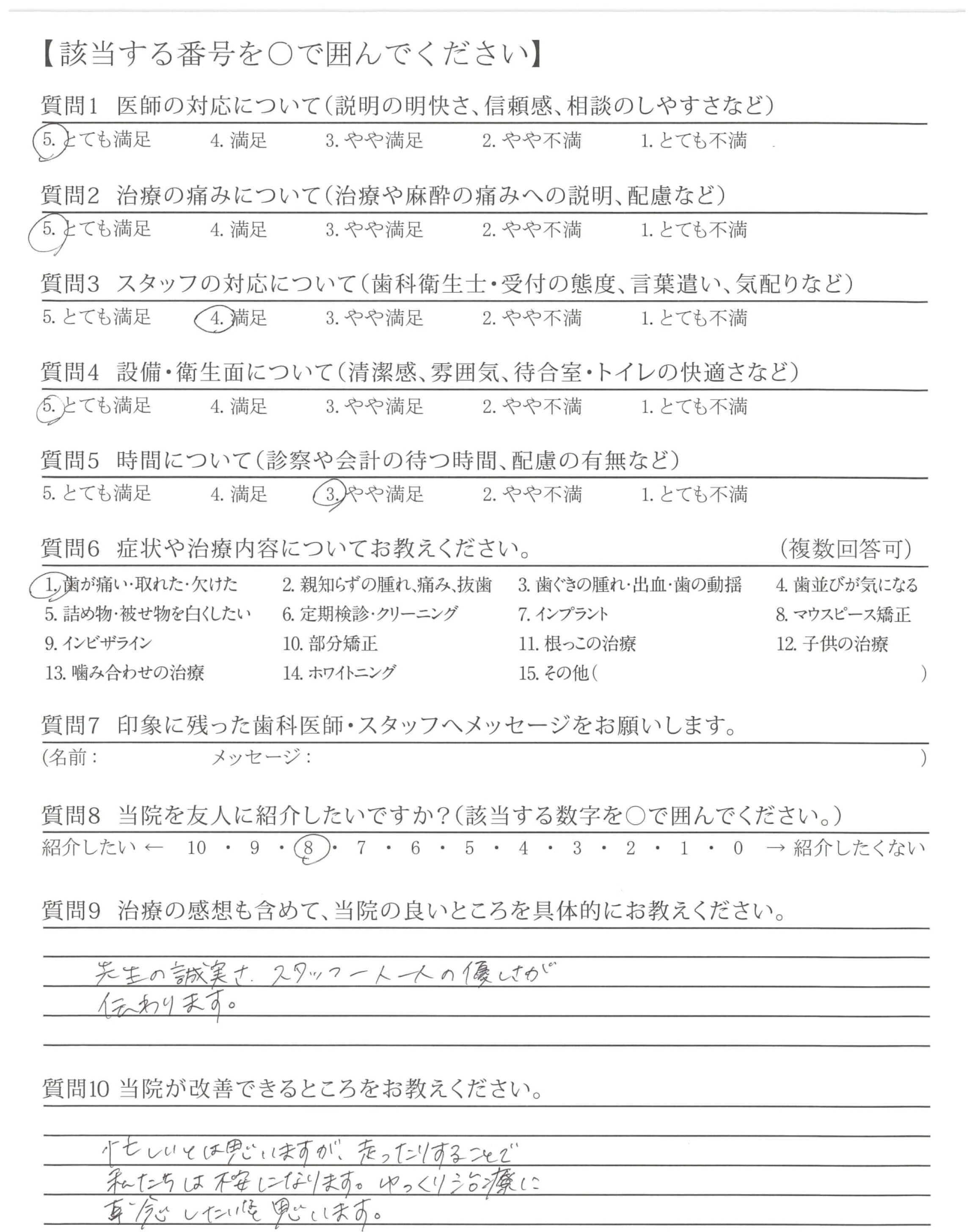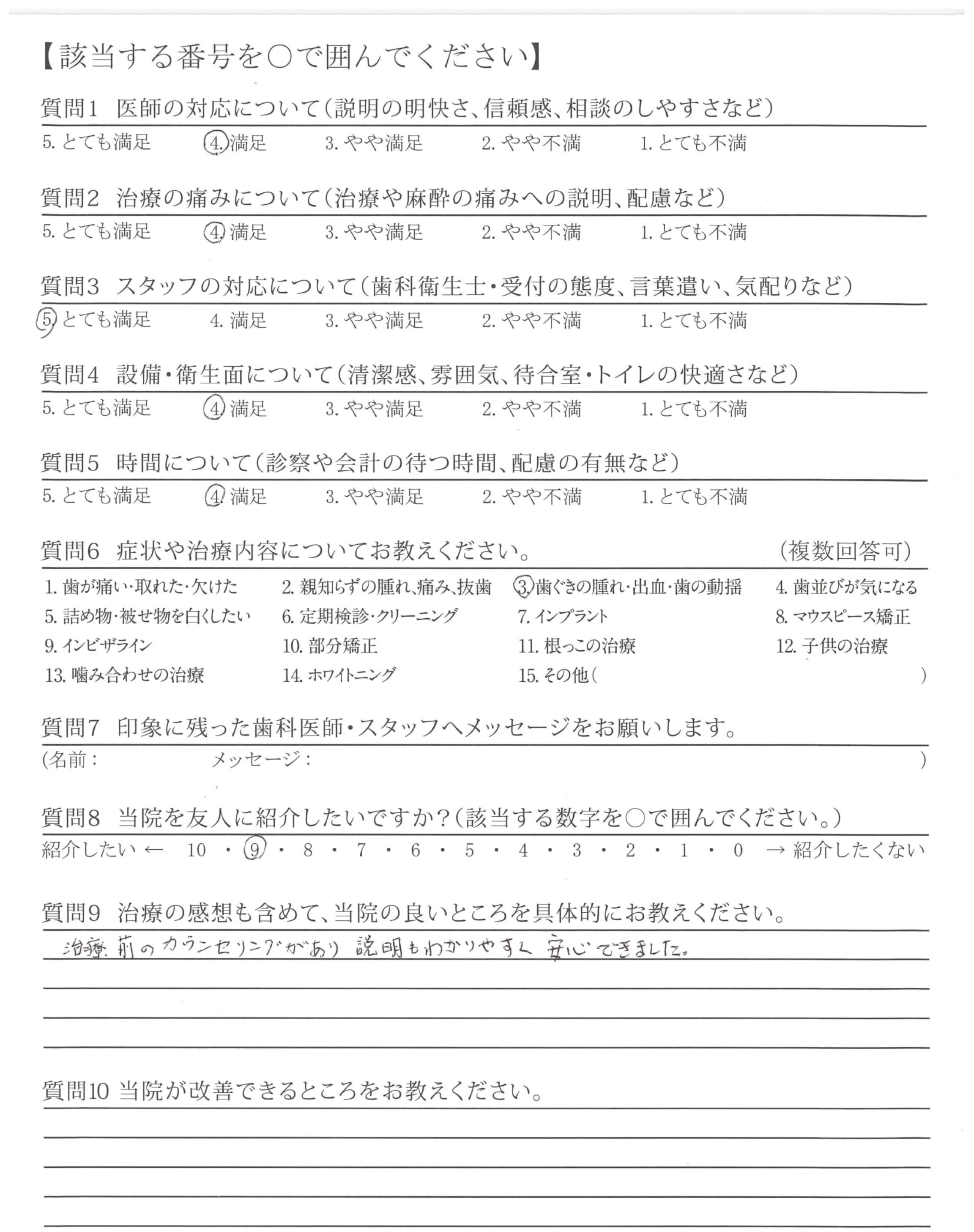 治療前後の説明がわかりやすく、治療をお任せできました。