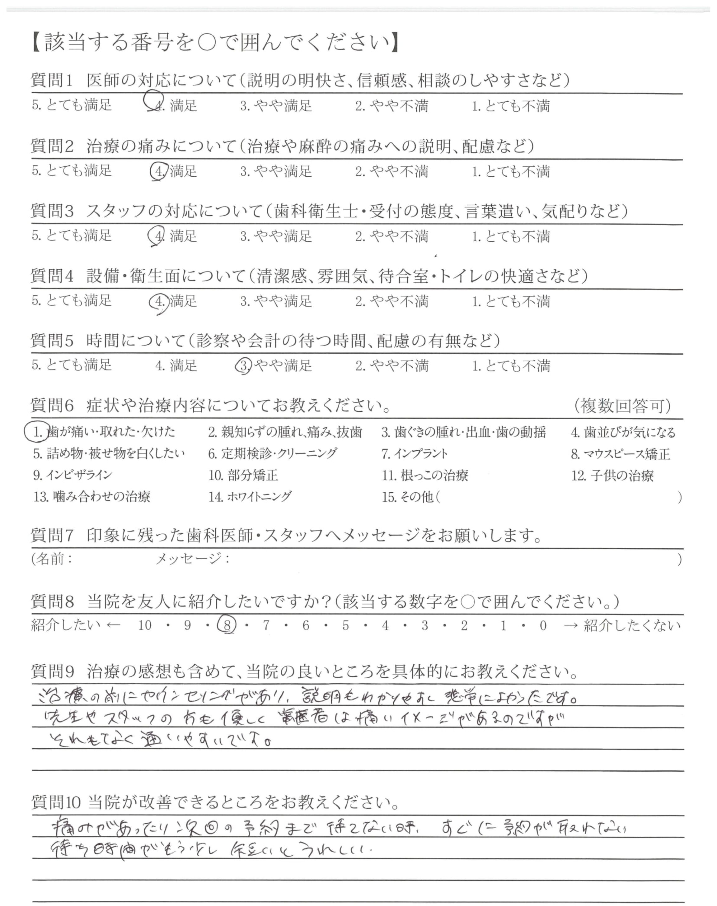 | 治療の痛みへの配慮 | ![]() ![]() ![]() ![]() 4.12 |