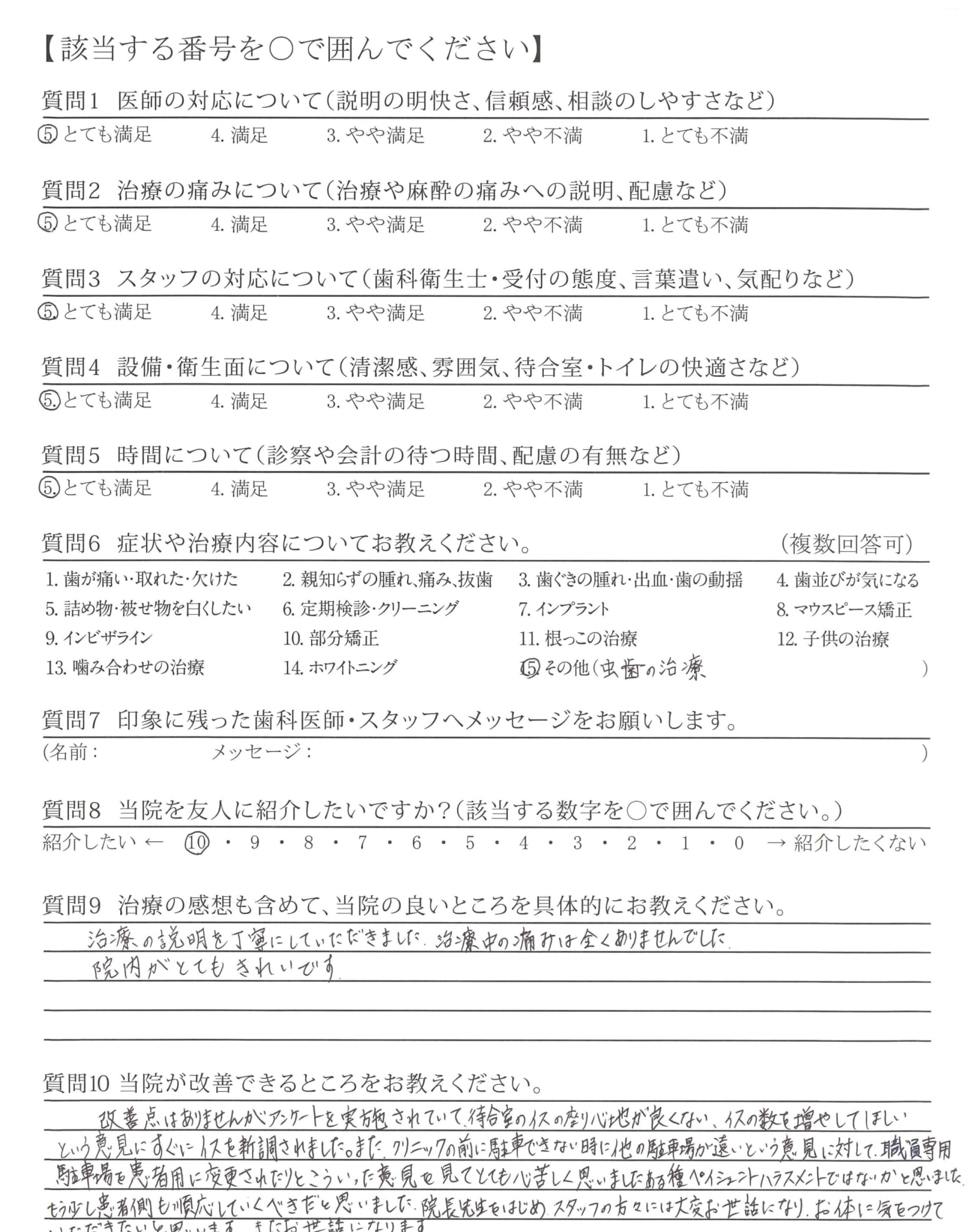 ・この地域では、レベルの高い信頼出来る歯医者さんだと思っています。