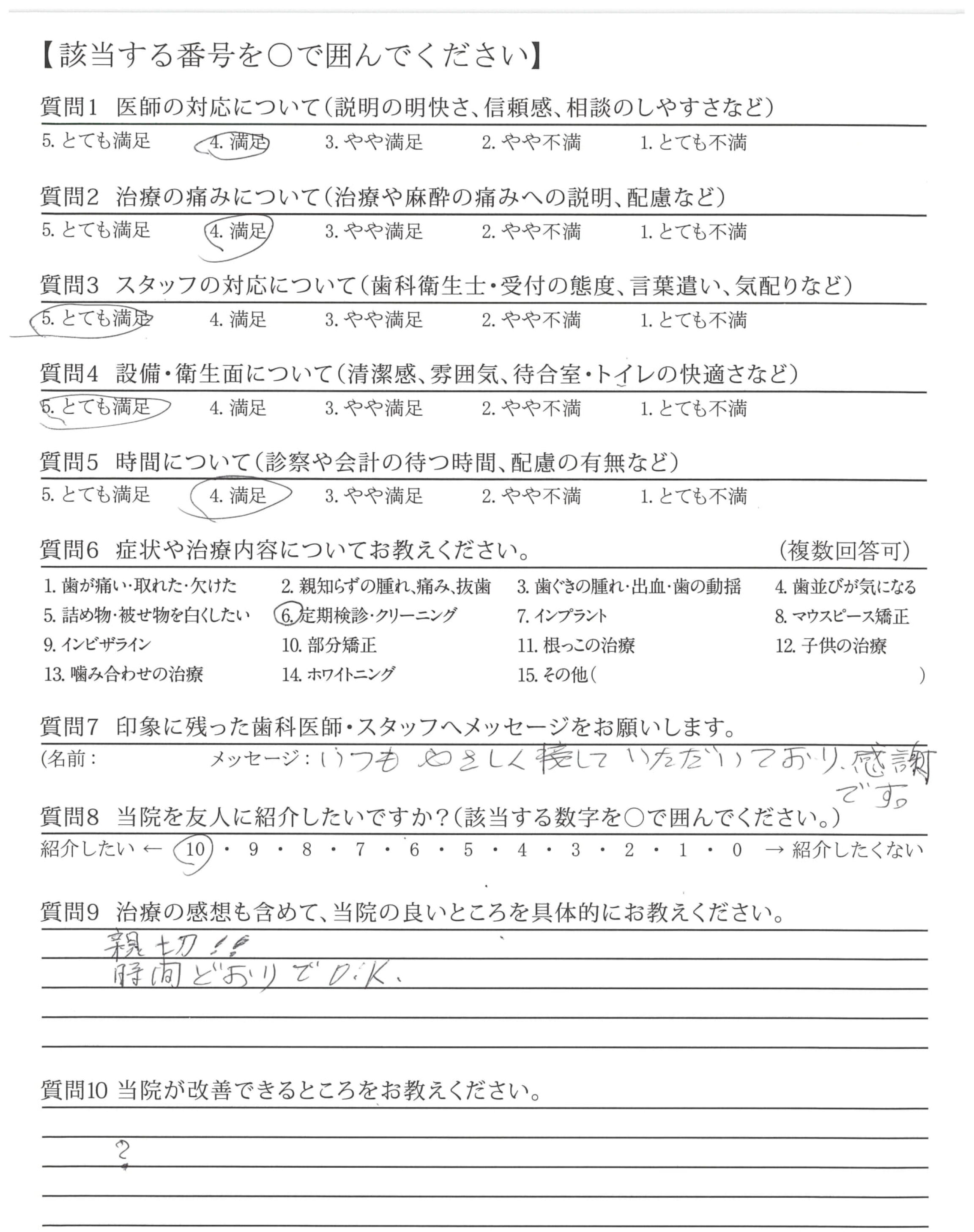 定期検診でいつもお世話になっています。私自身が痛みに弱いのを理解してくださっていて、声がけをいつもしてくださり助かっています。