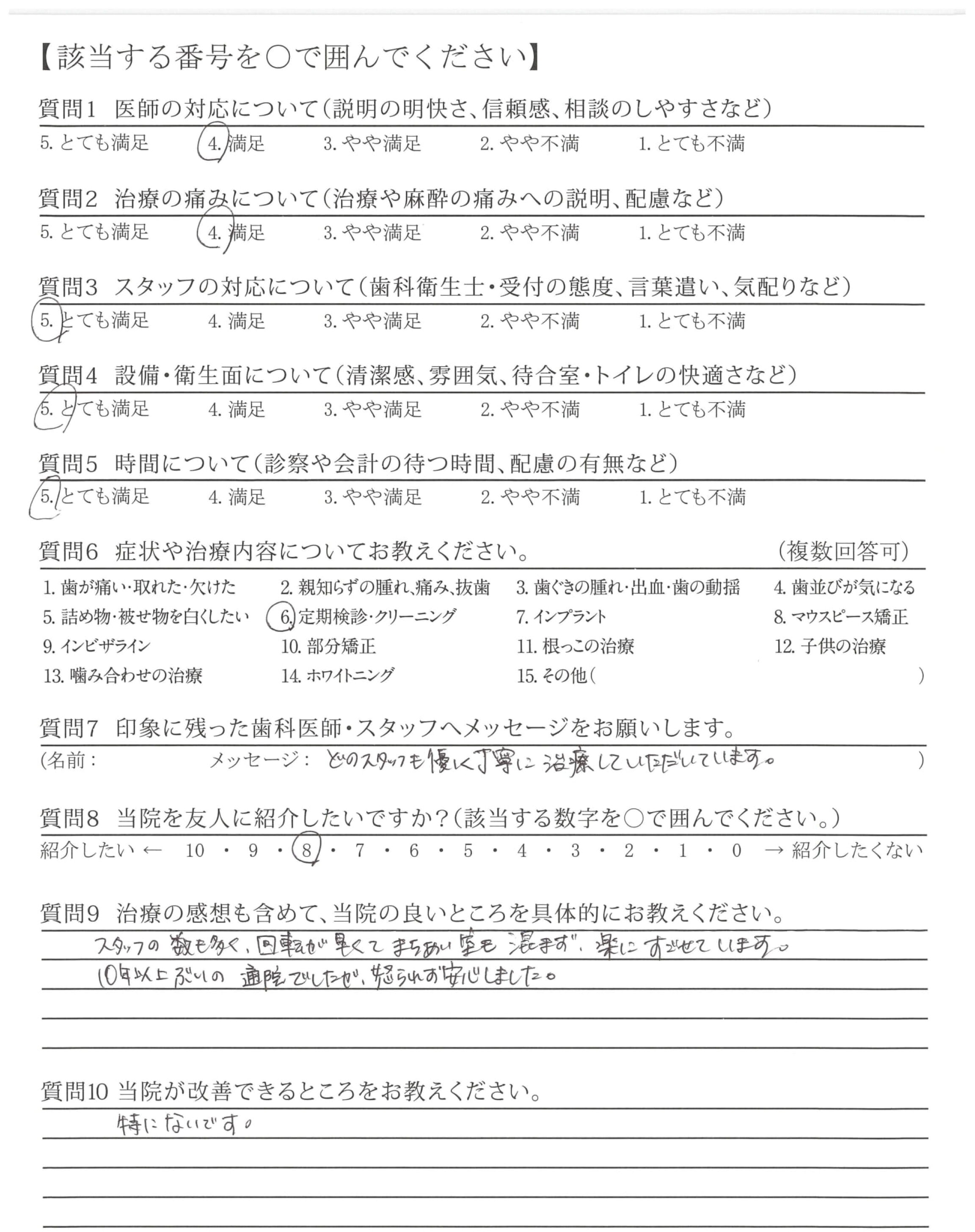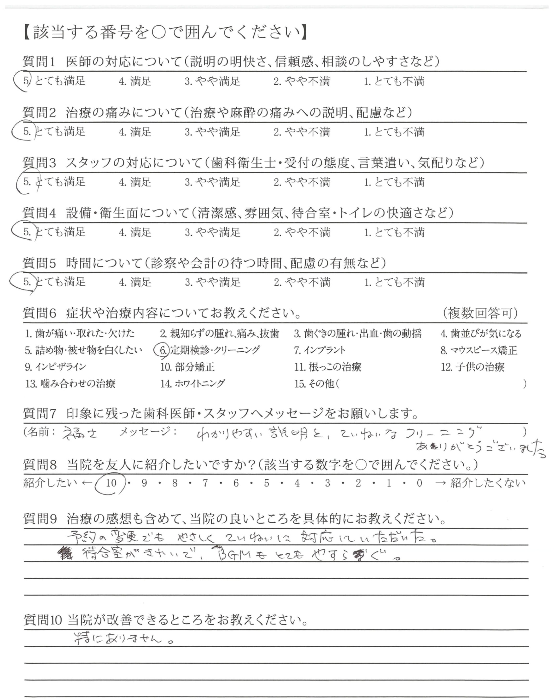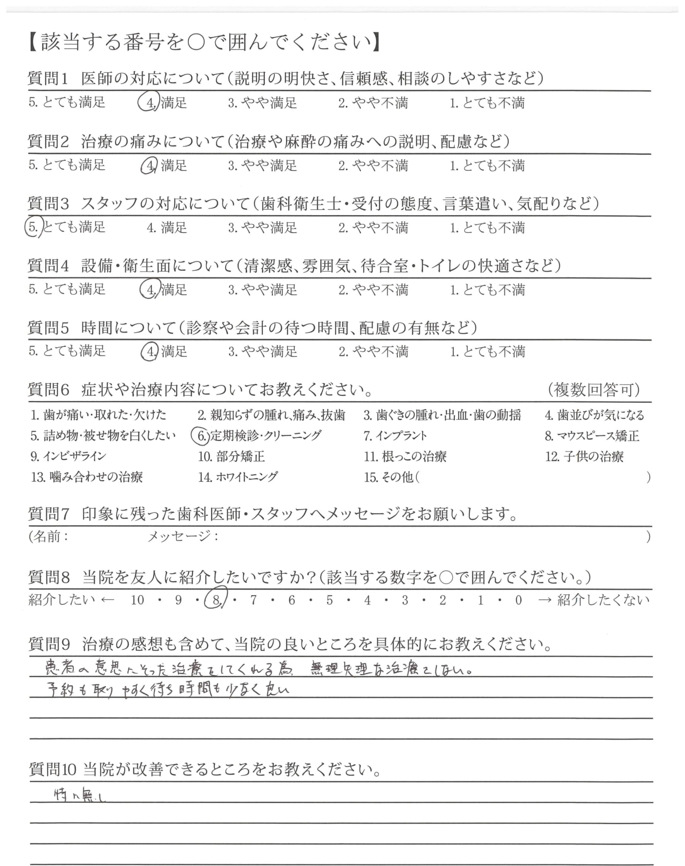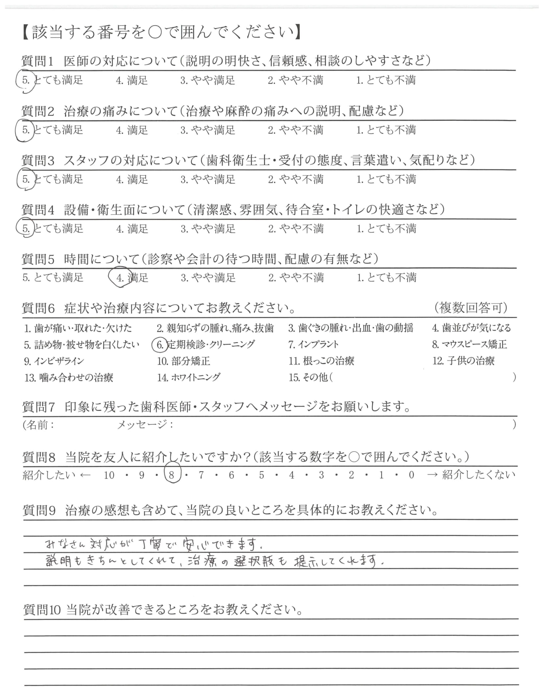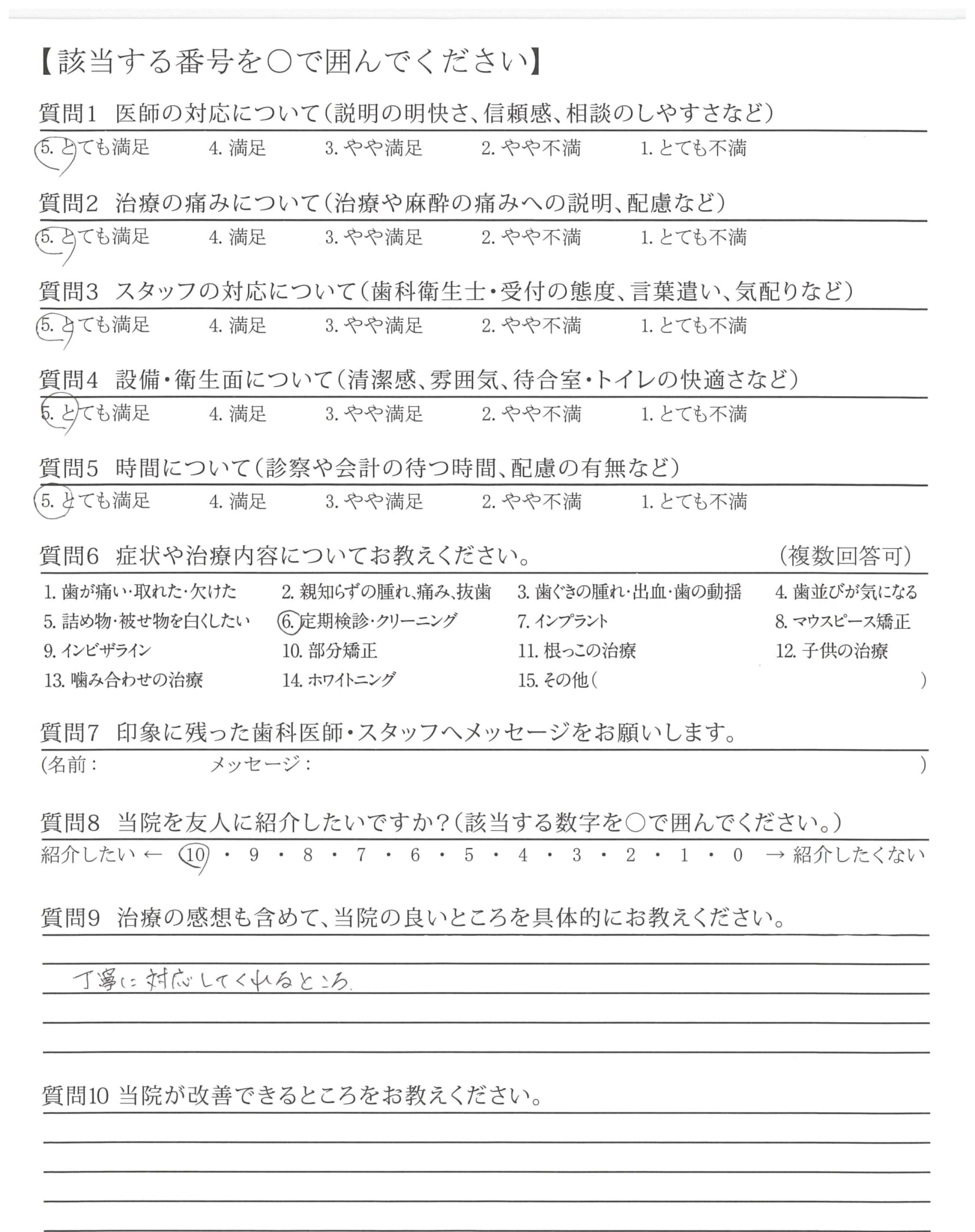 丁寧に対応、治療くださりありがとうございます。メンテナンスについてもよろしくお願いします