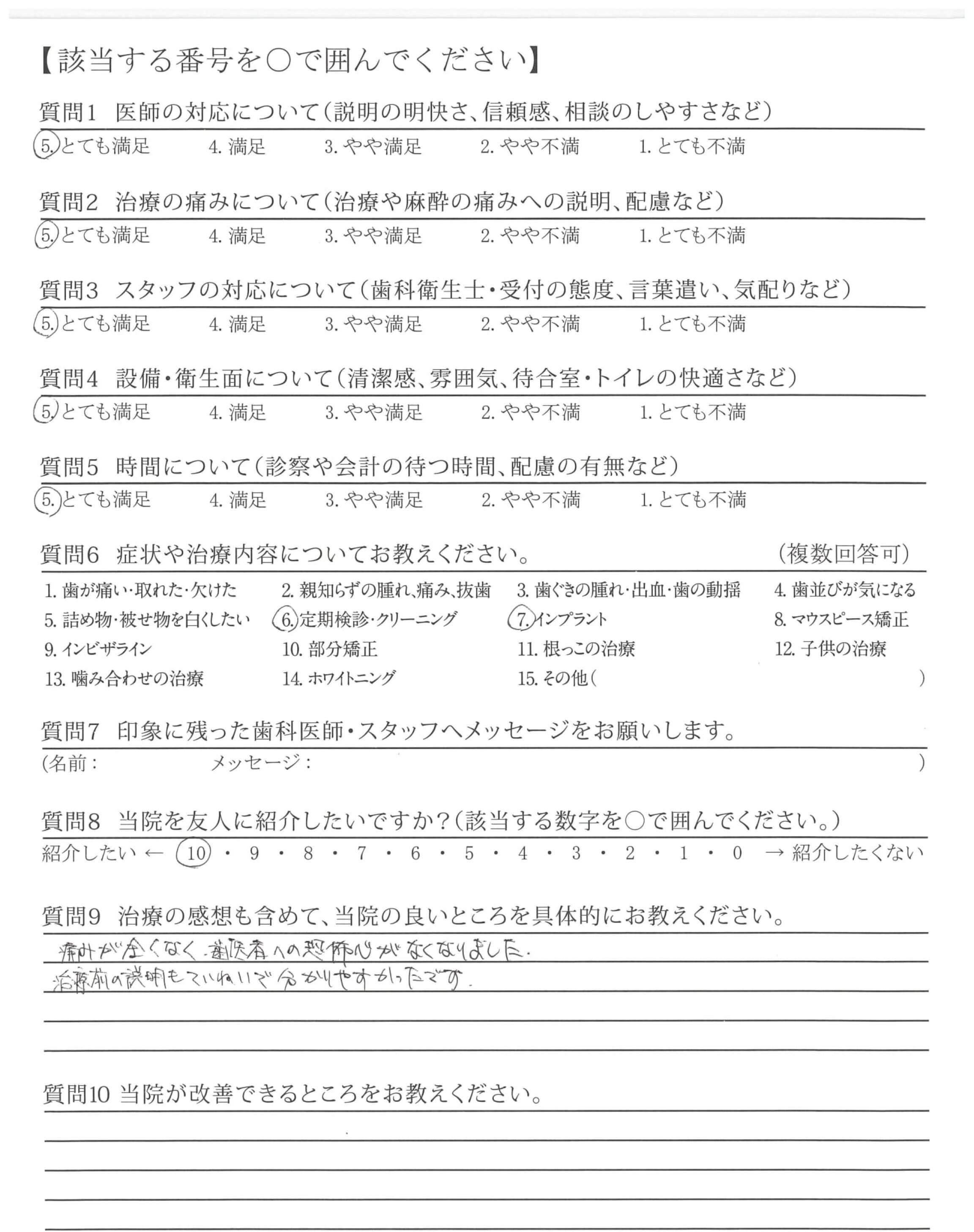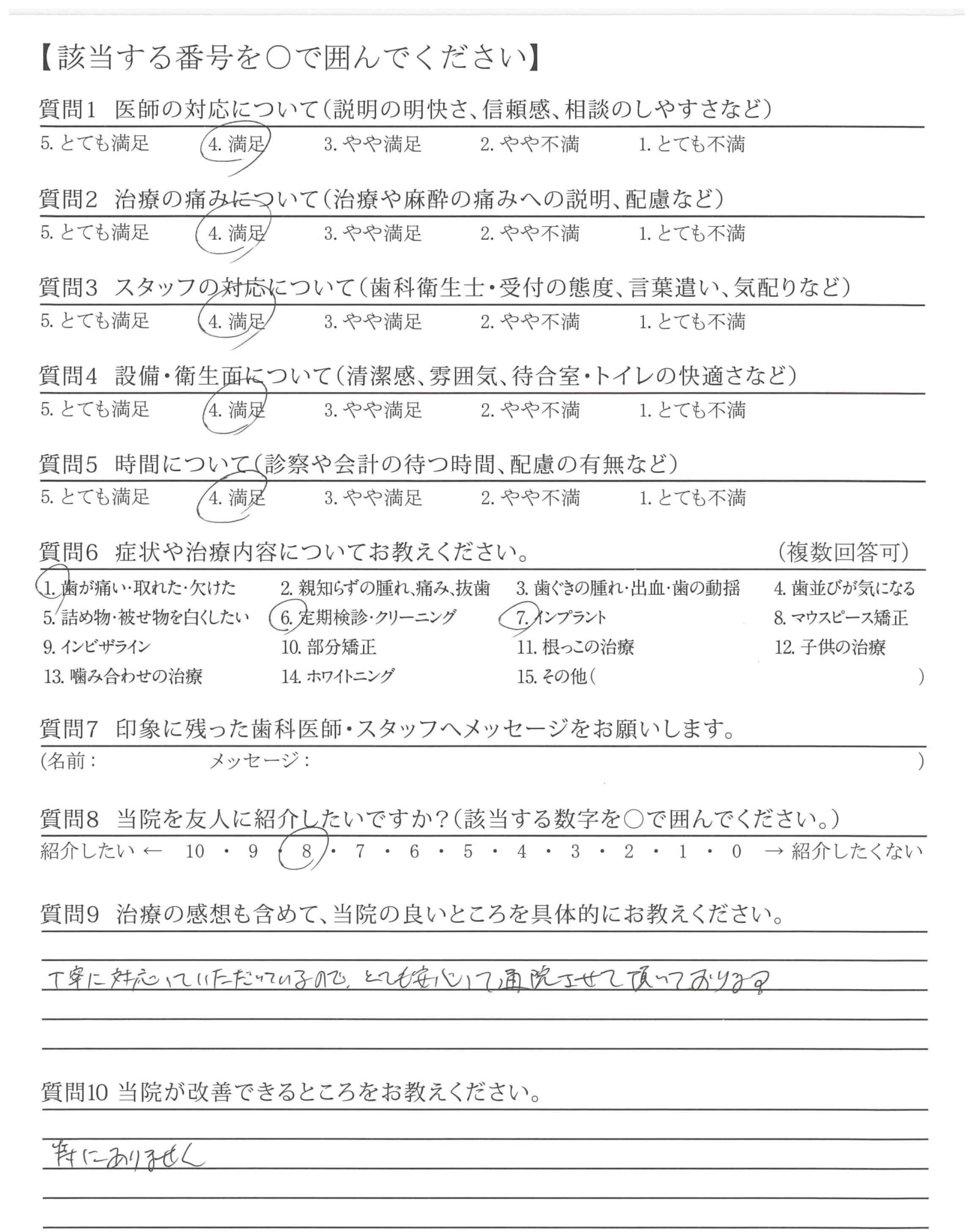 インプラントの説明が詳しくわかりやすく、安心できた。