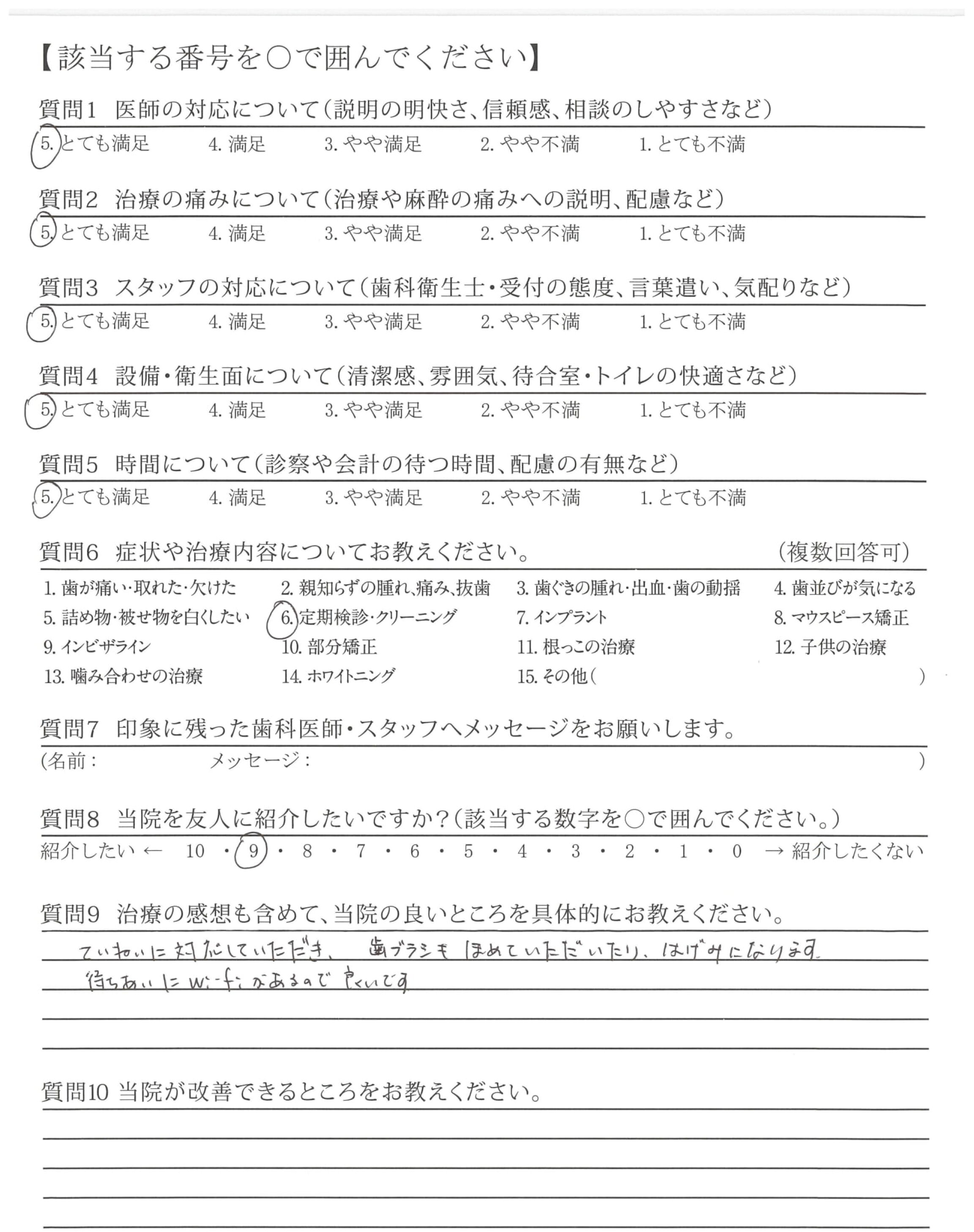 ていねいに対応していただき、歯ブラシもほめていただいたり、はげみになります。