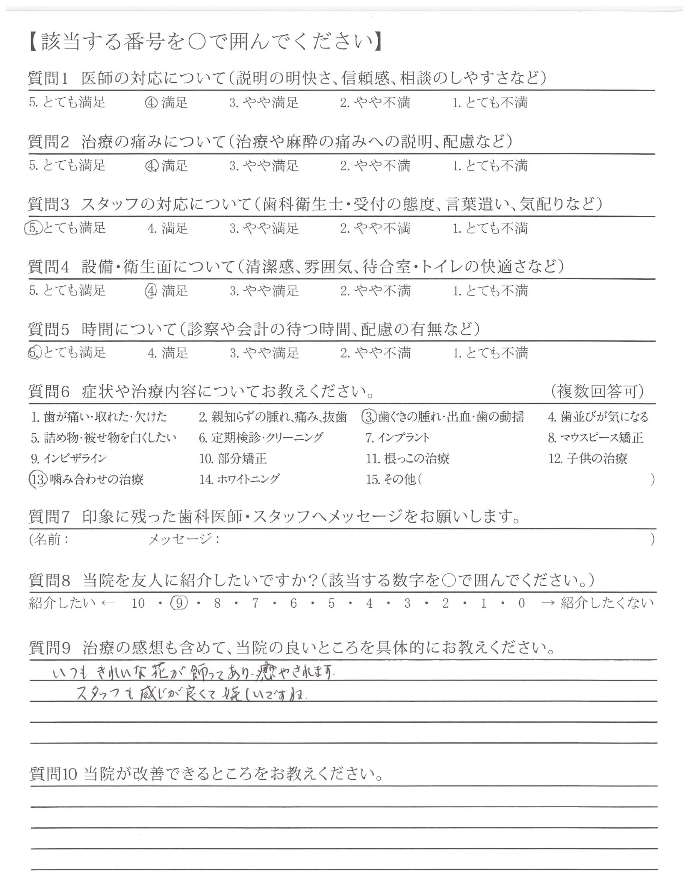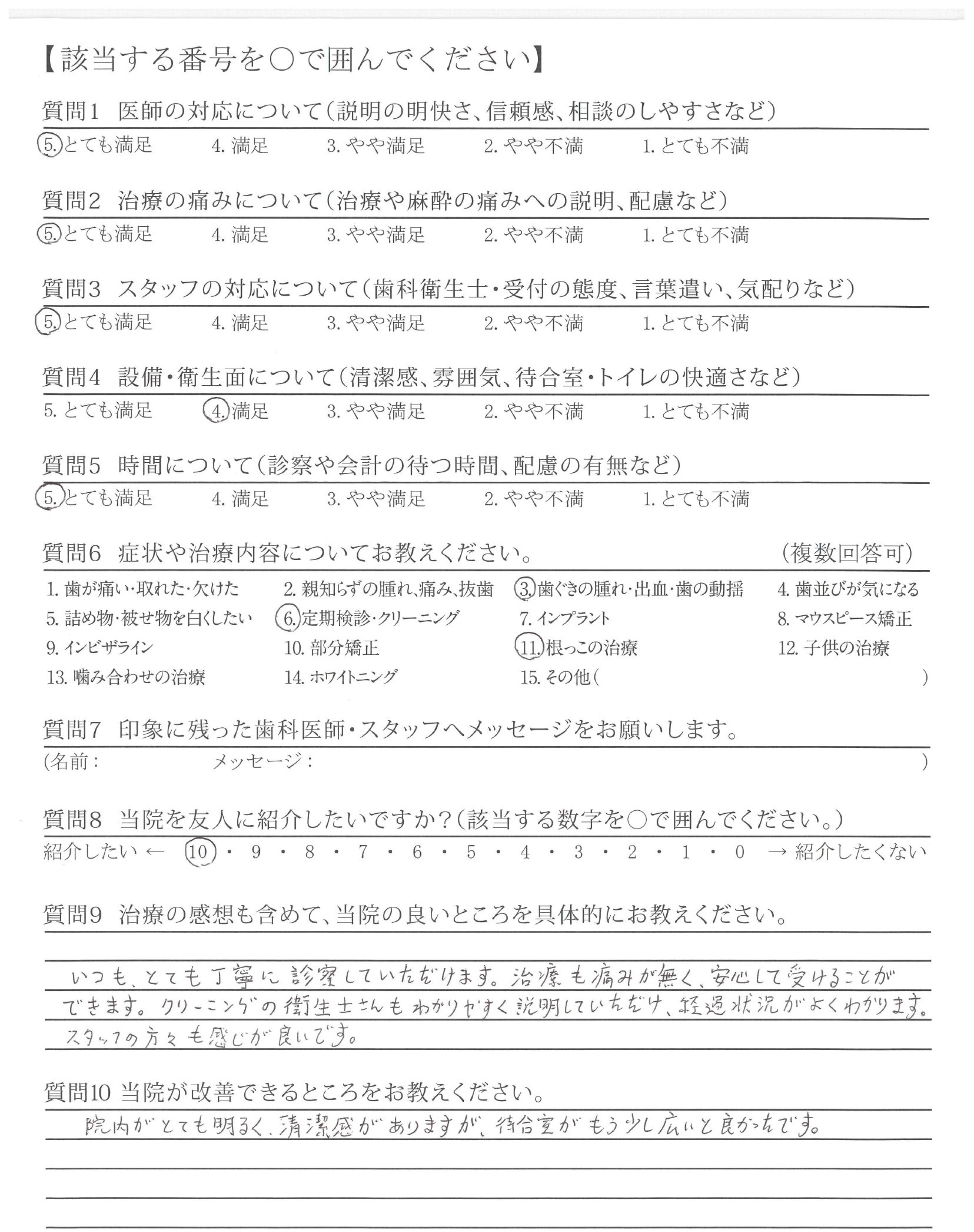 いつも丁寧なご説明、治療をありがとうございますとても信頼できるステキな先生ですありがとうございます