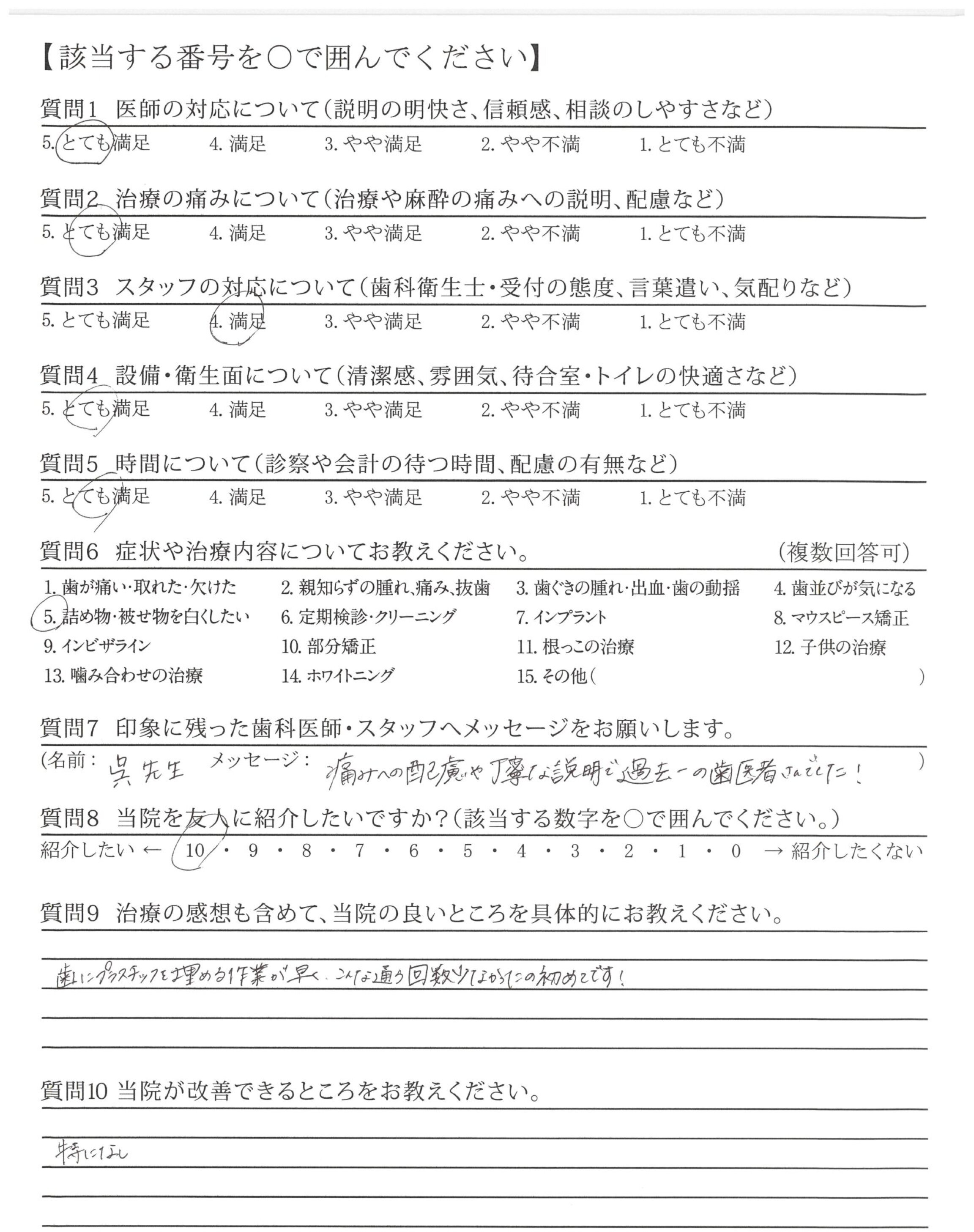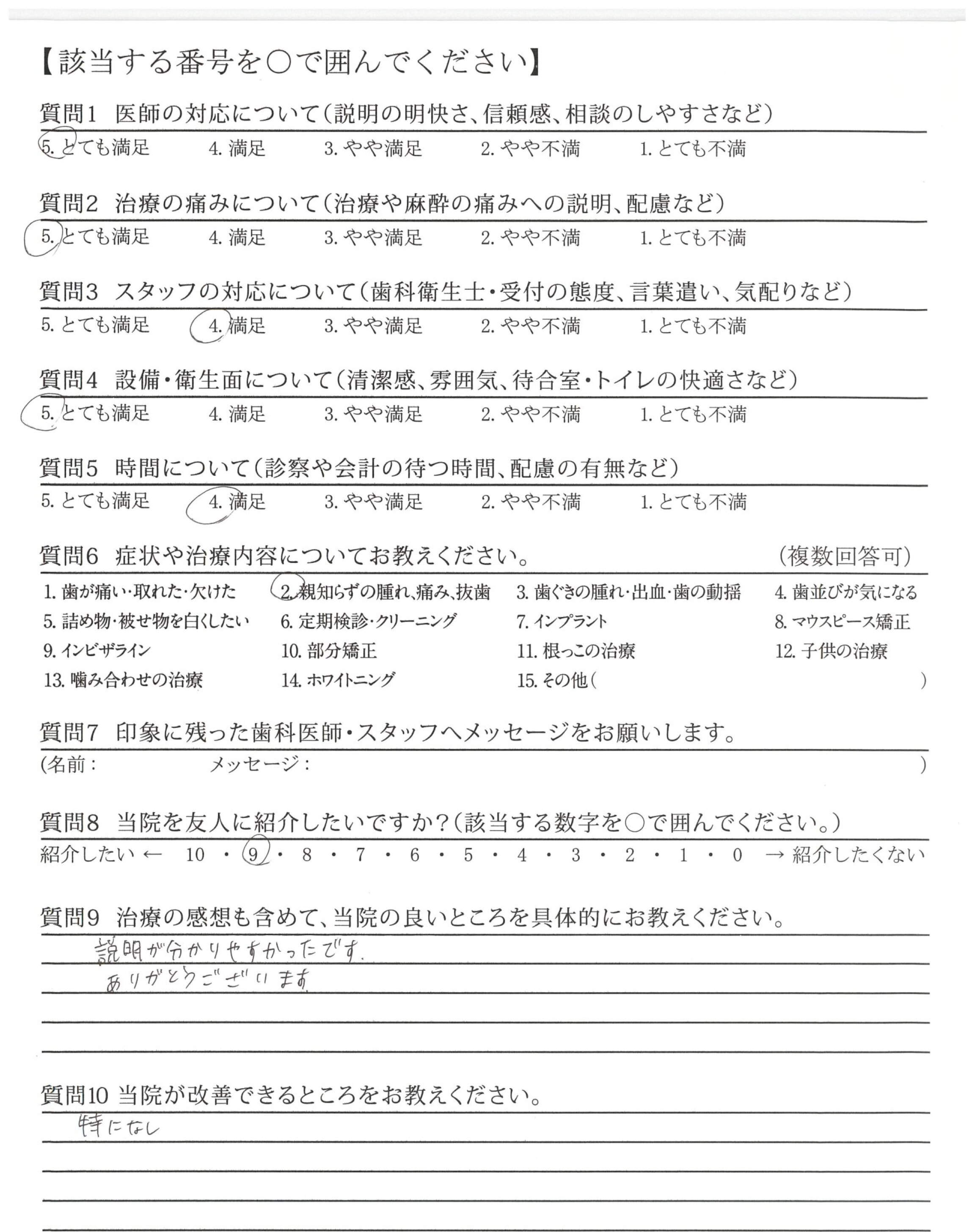| 歯科医師の対応 | ![]() ![]() ![]() ![]() 4.89 |