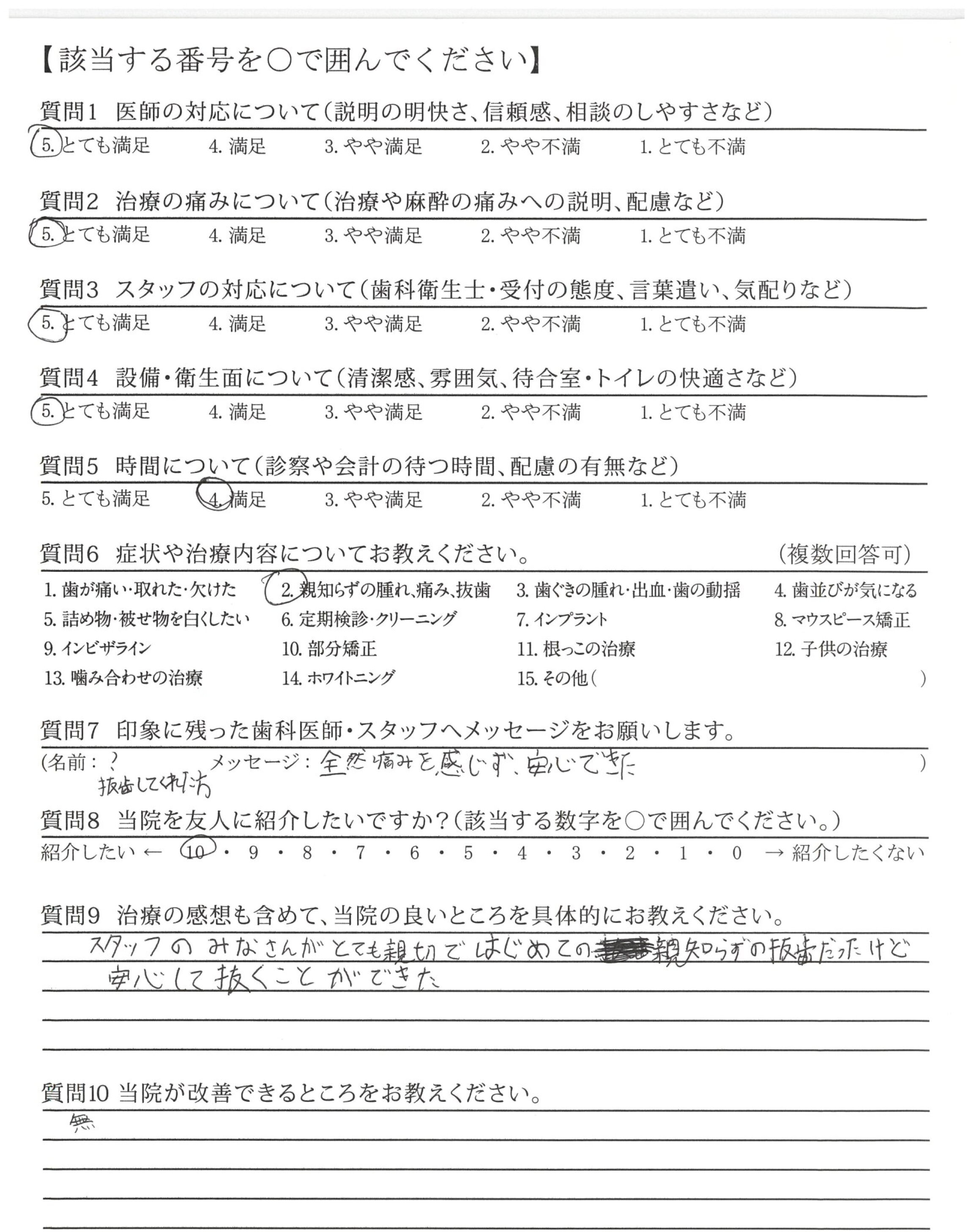 スタッフのみなさんがとても親切ではじめての親知らずの抜歯だったけど安心して抜くことができた
