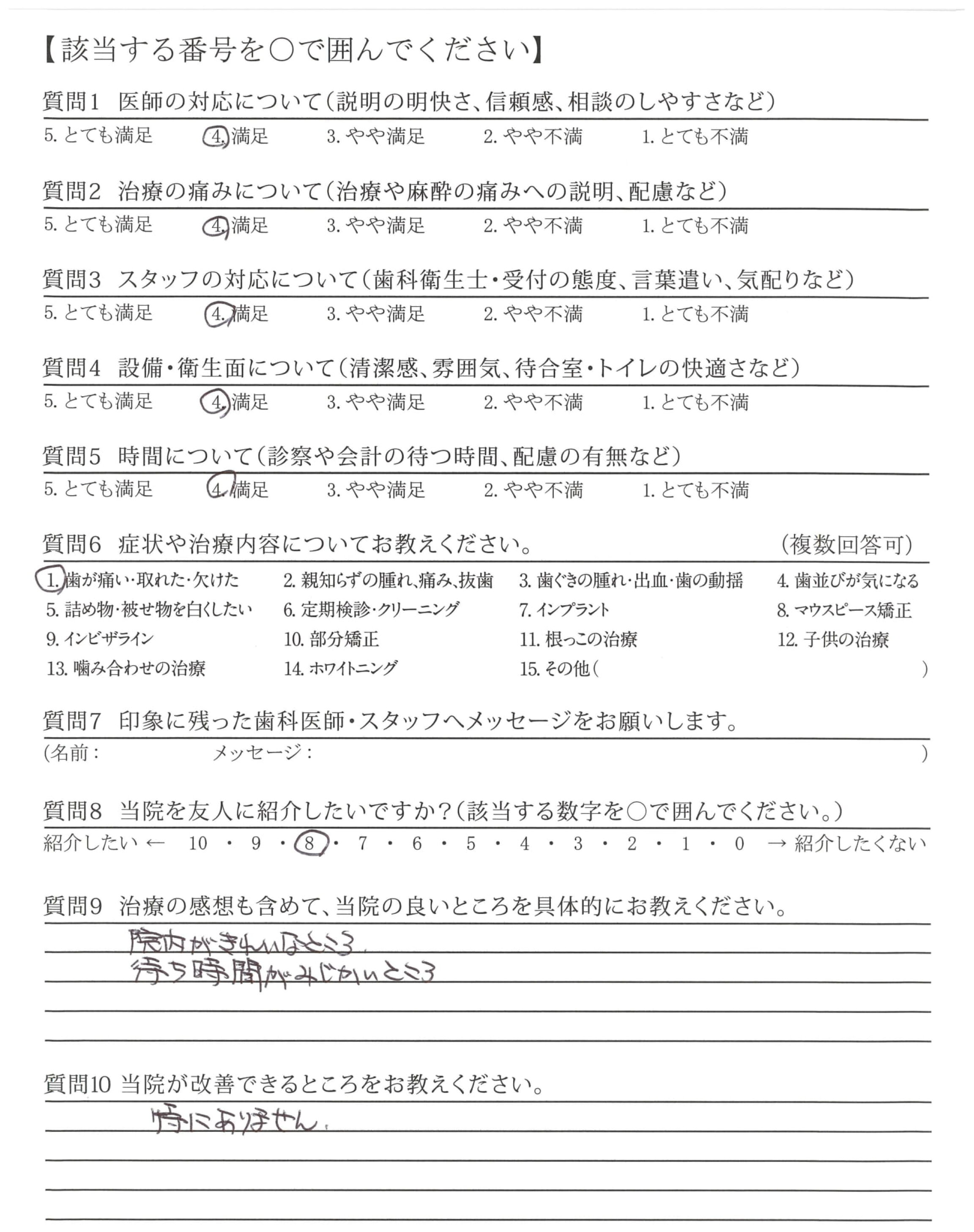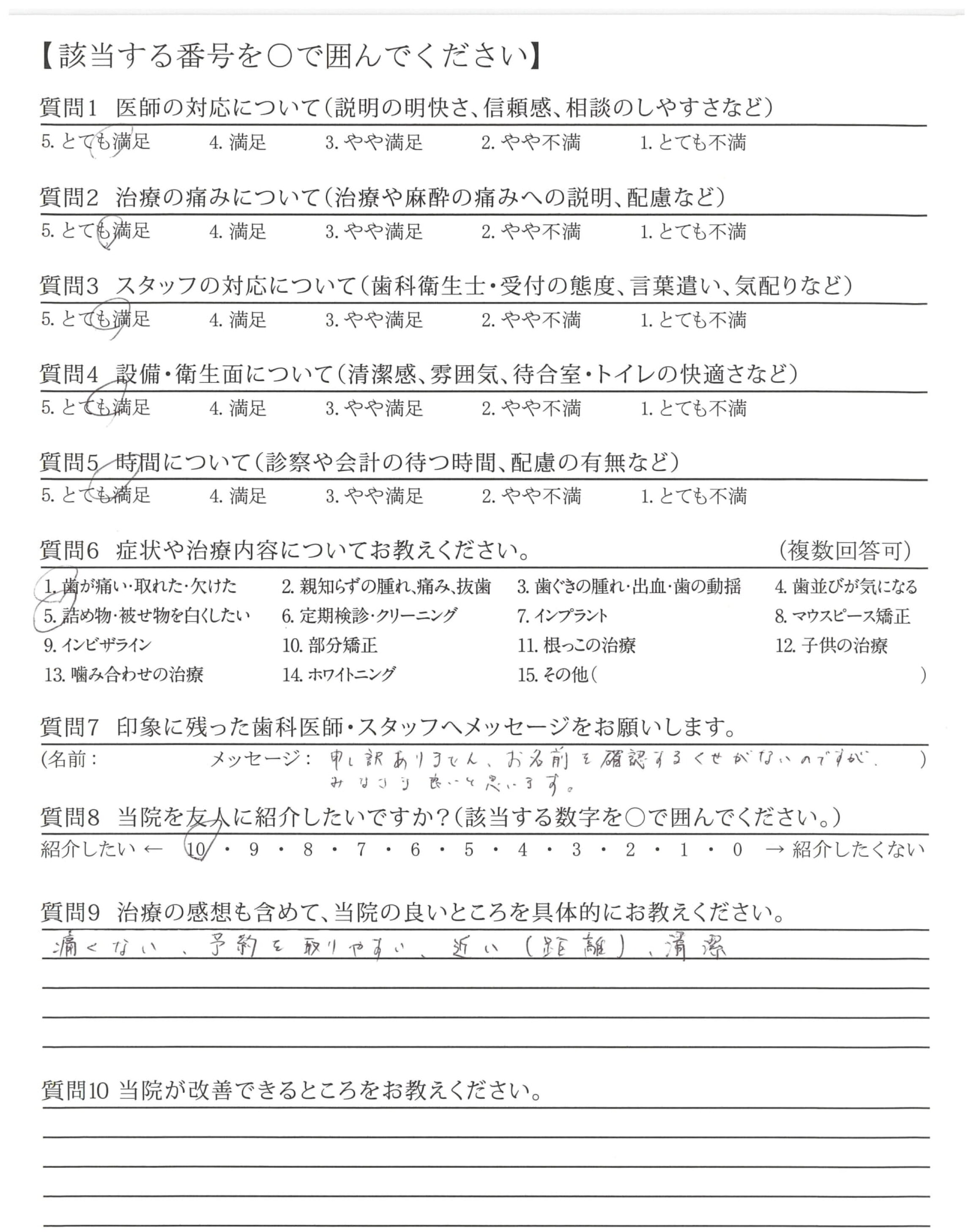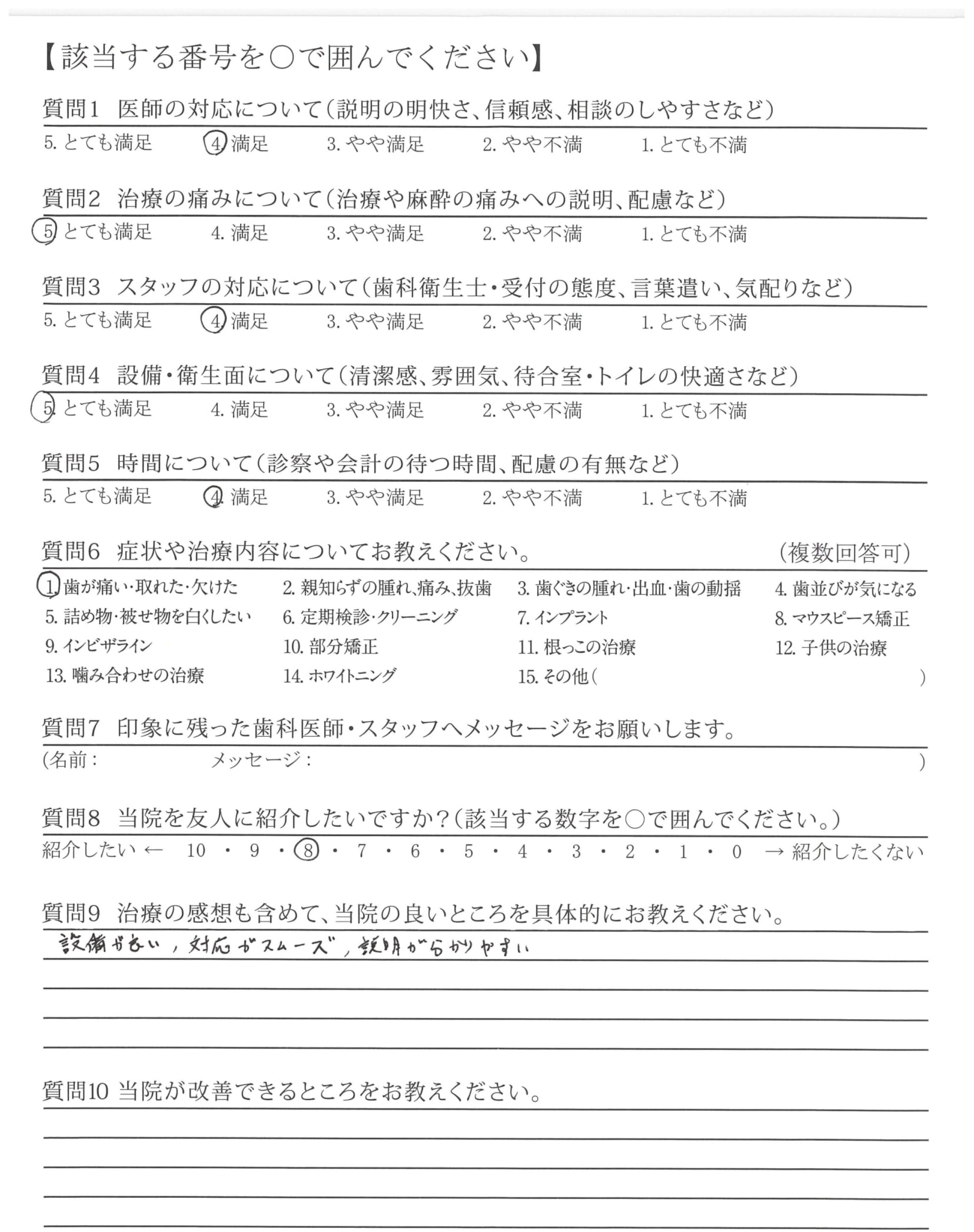 | 治療の痛みへの配慮 | ![]() ![]() ![]() ![]() 4.80 |