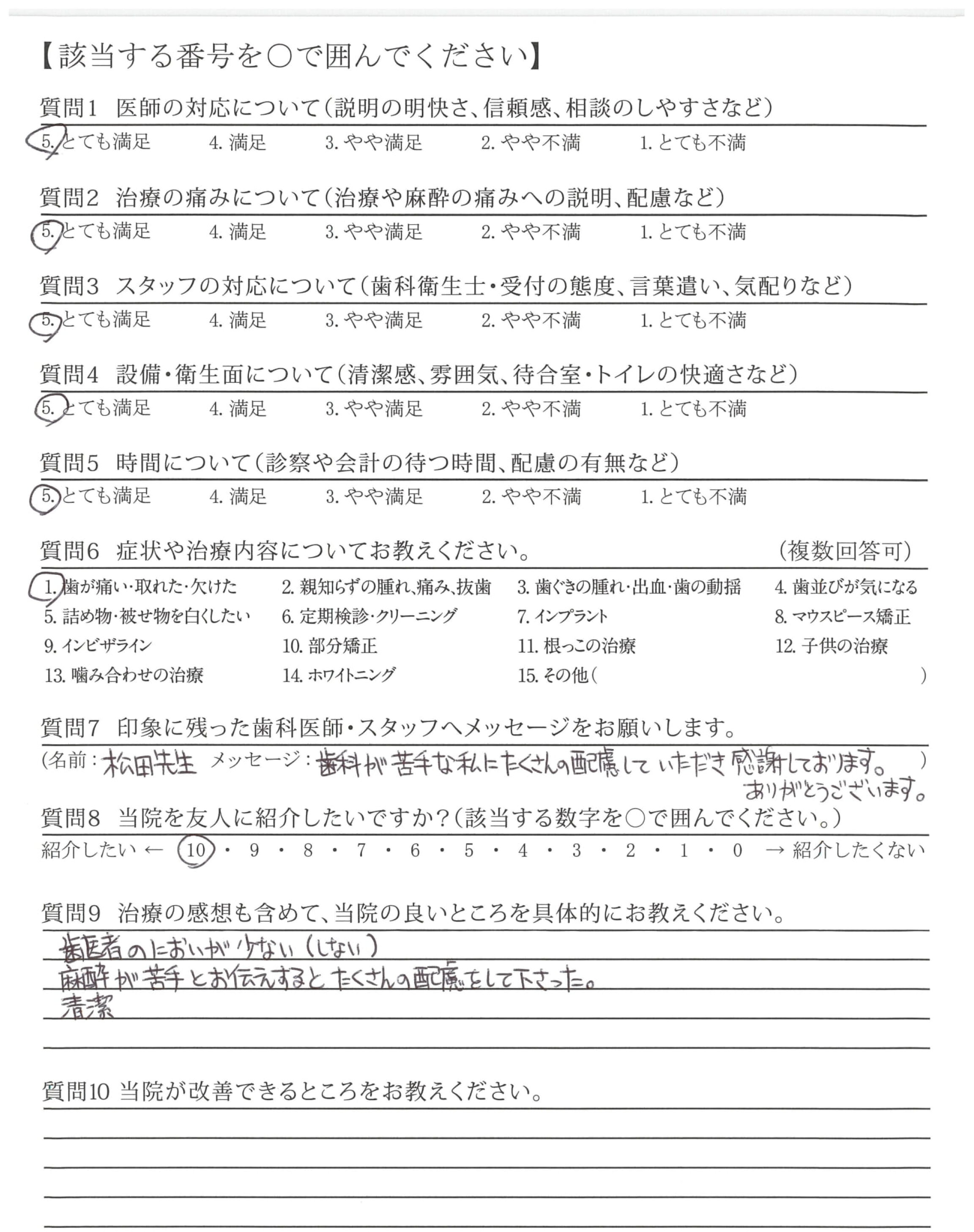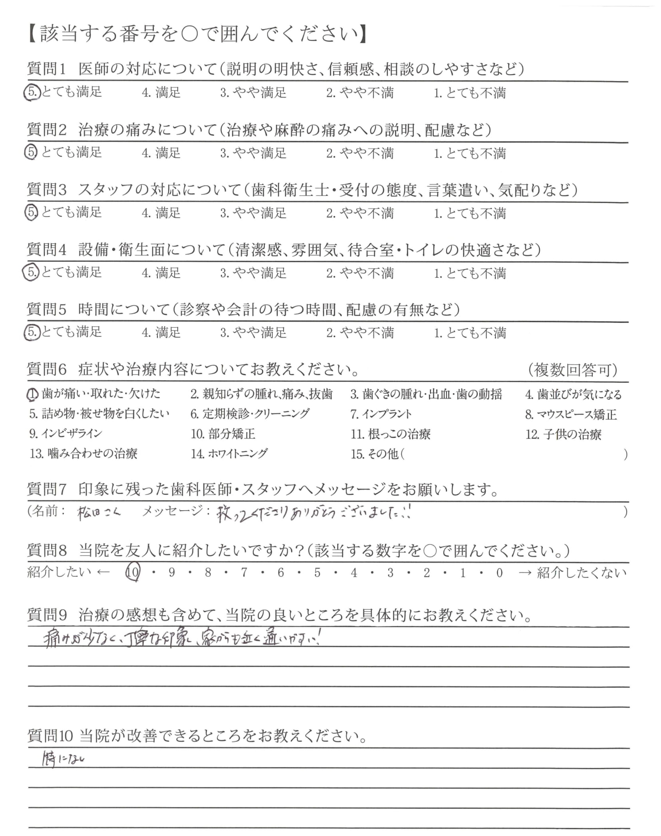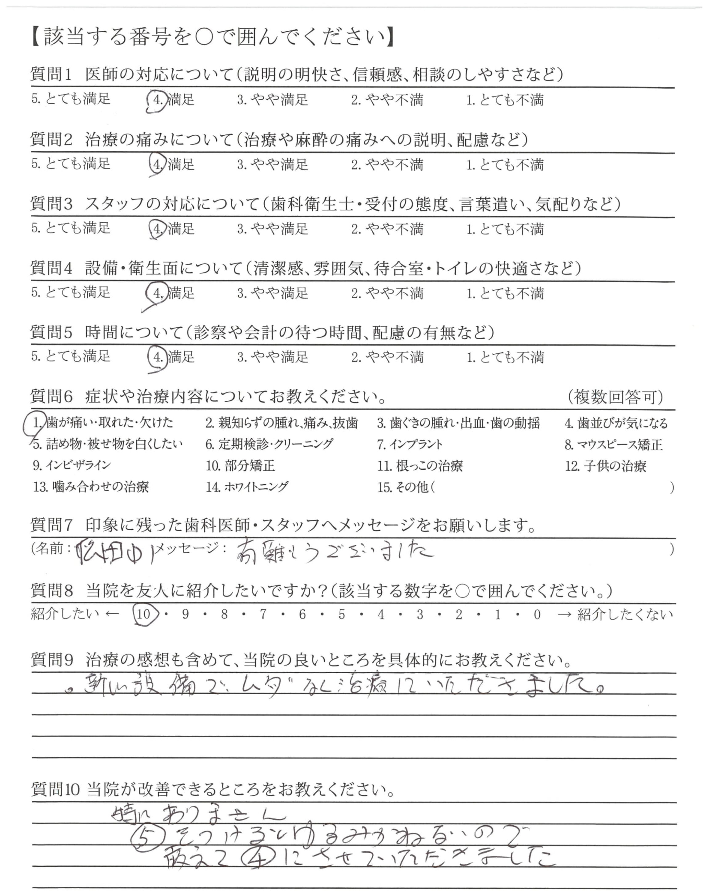 | 治療の痛みへの配慮 | ![]() ![]() ![]() ![]() 4.80 |