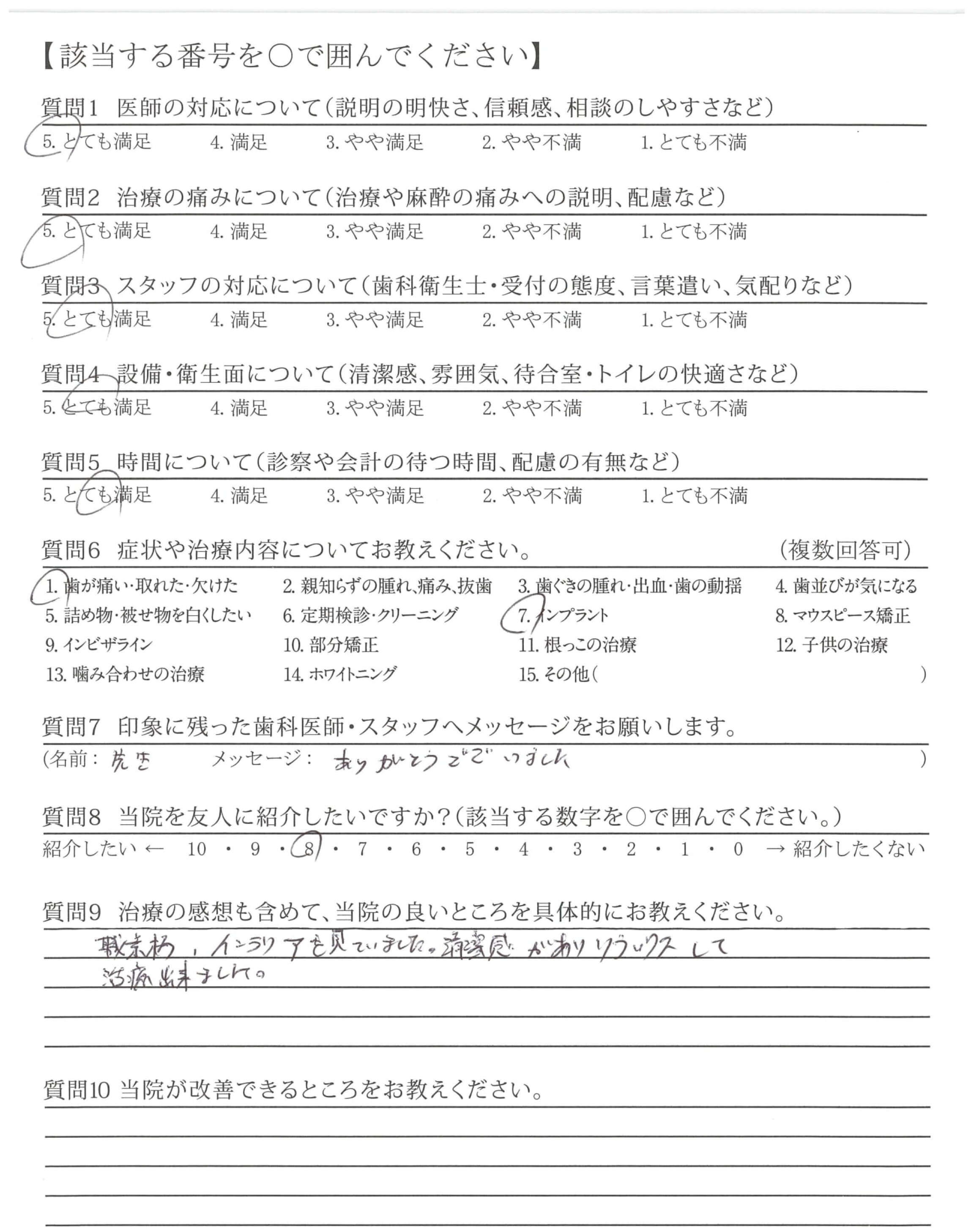 歯科が苦手な私にたくさんの配慮していただき感謝しております。ありがとうございます。