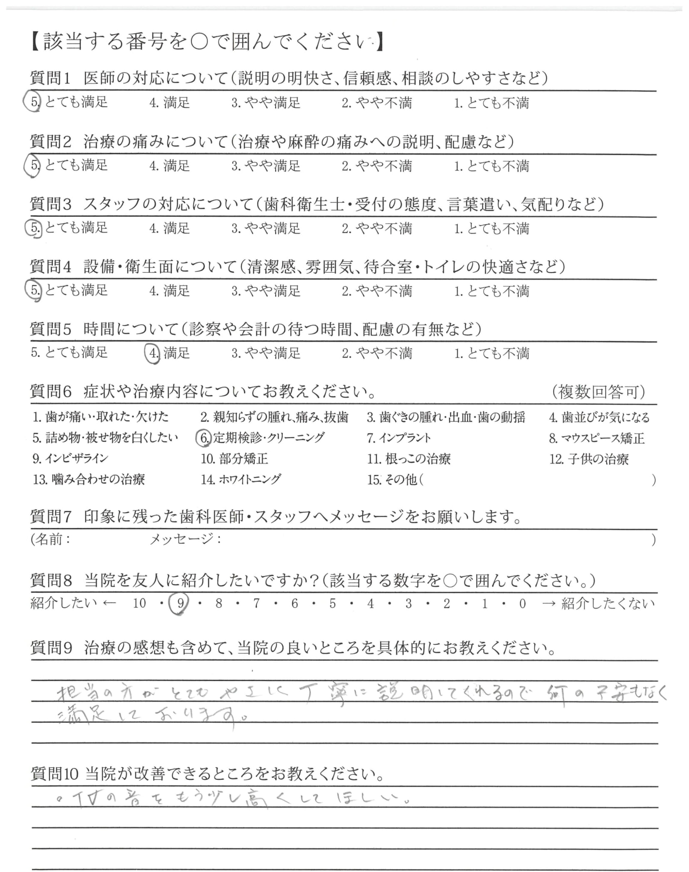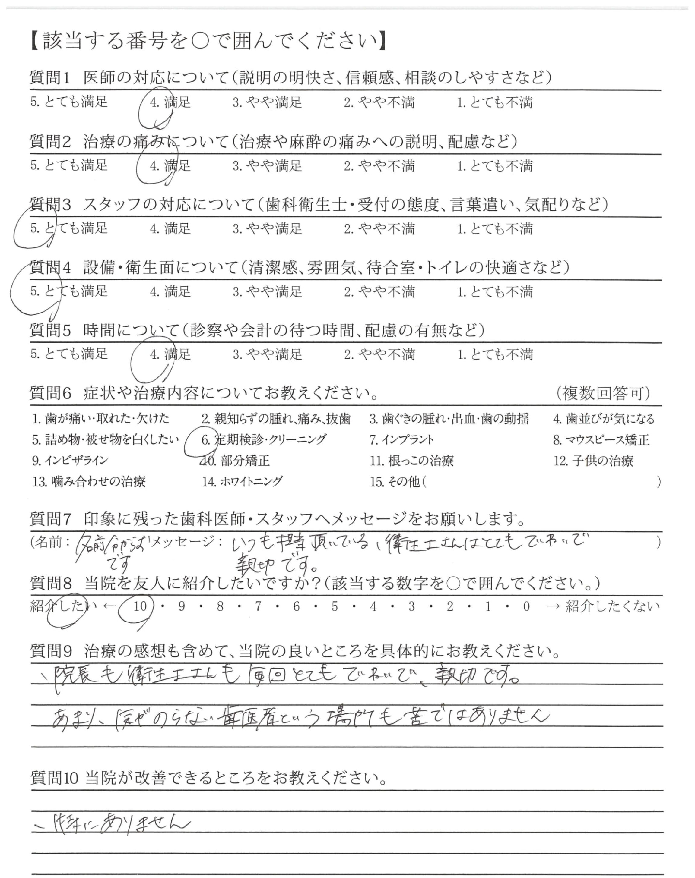 丁寧なクリーニング、わかりやすい歯みがき指導をいつもありがとうございます。頑張ってきれいにみがくぞ!という気持ちになれ、安心しておまかせできます。