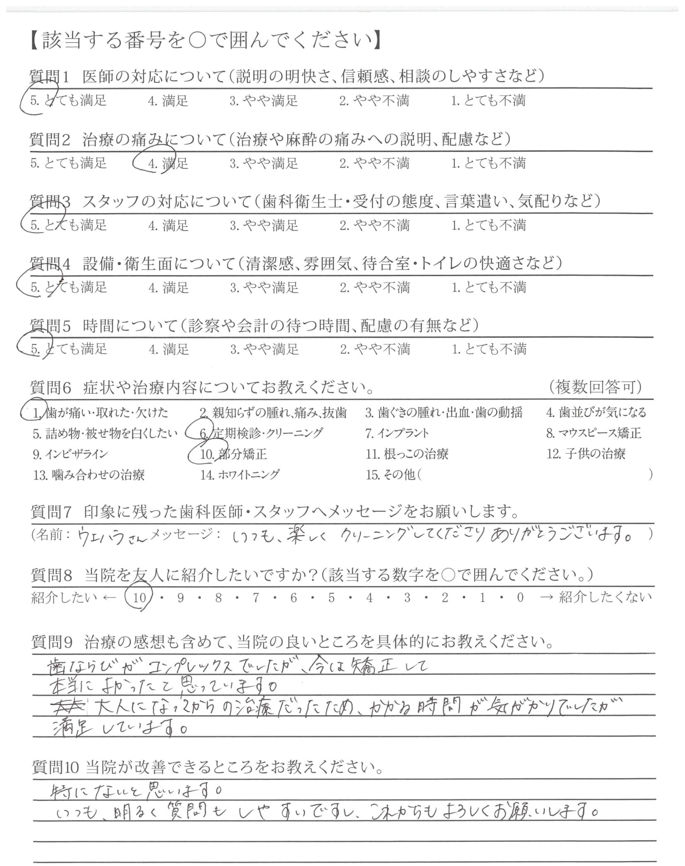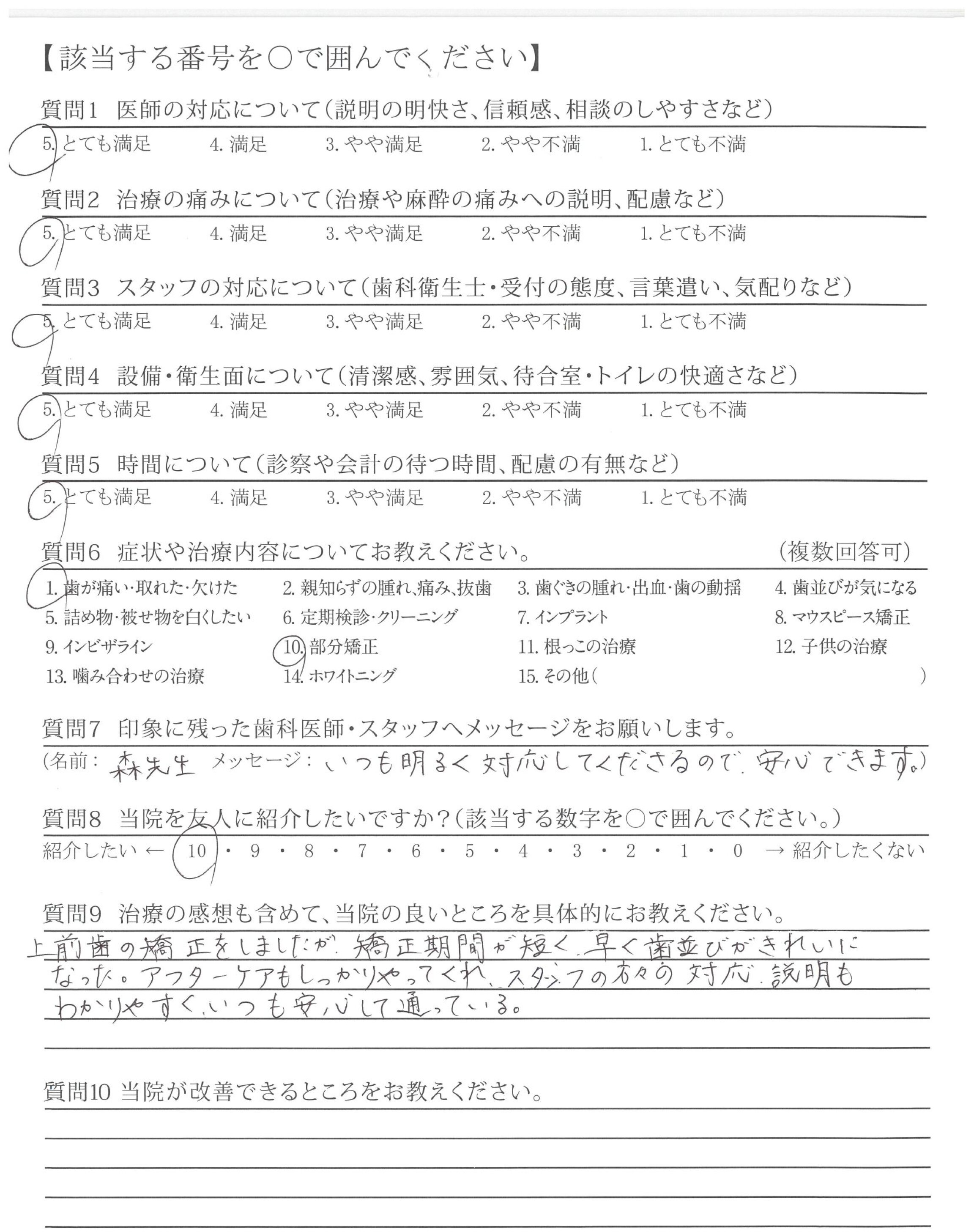 大人になってからの治療だったため、かかる時間が気がかりでしたが満足しています。