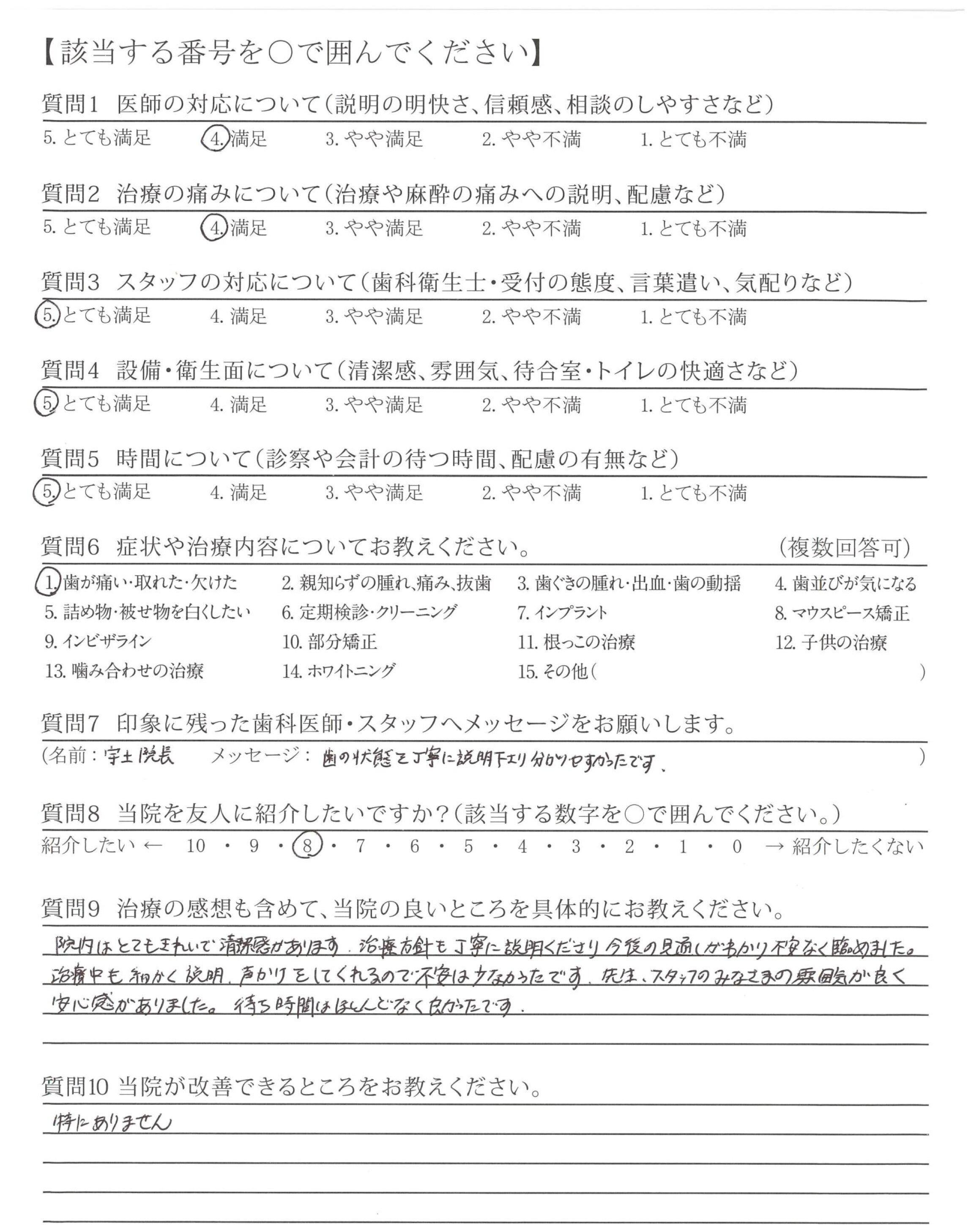 抜き終わった後もきちんと対応してくださり、好印象でした。また、ネット予約のシステムが進んでいて、予約が取りやすく、受付もスムーズで良いと思いました。