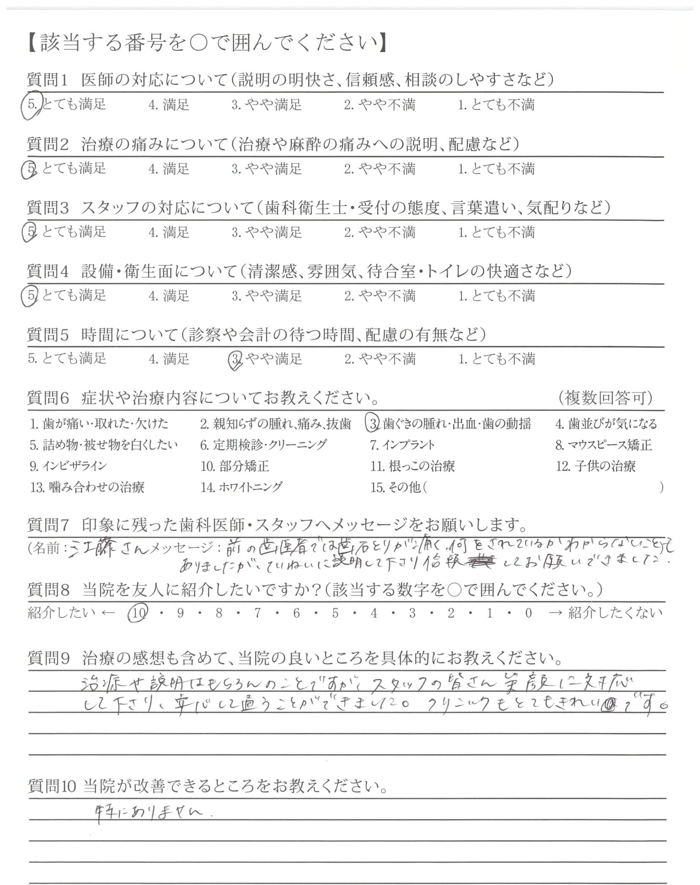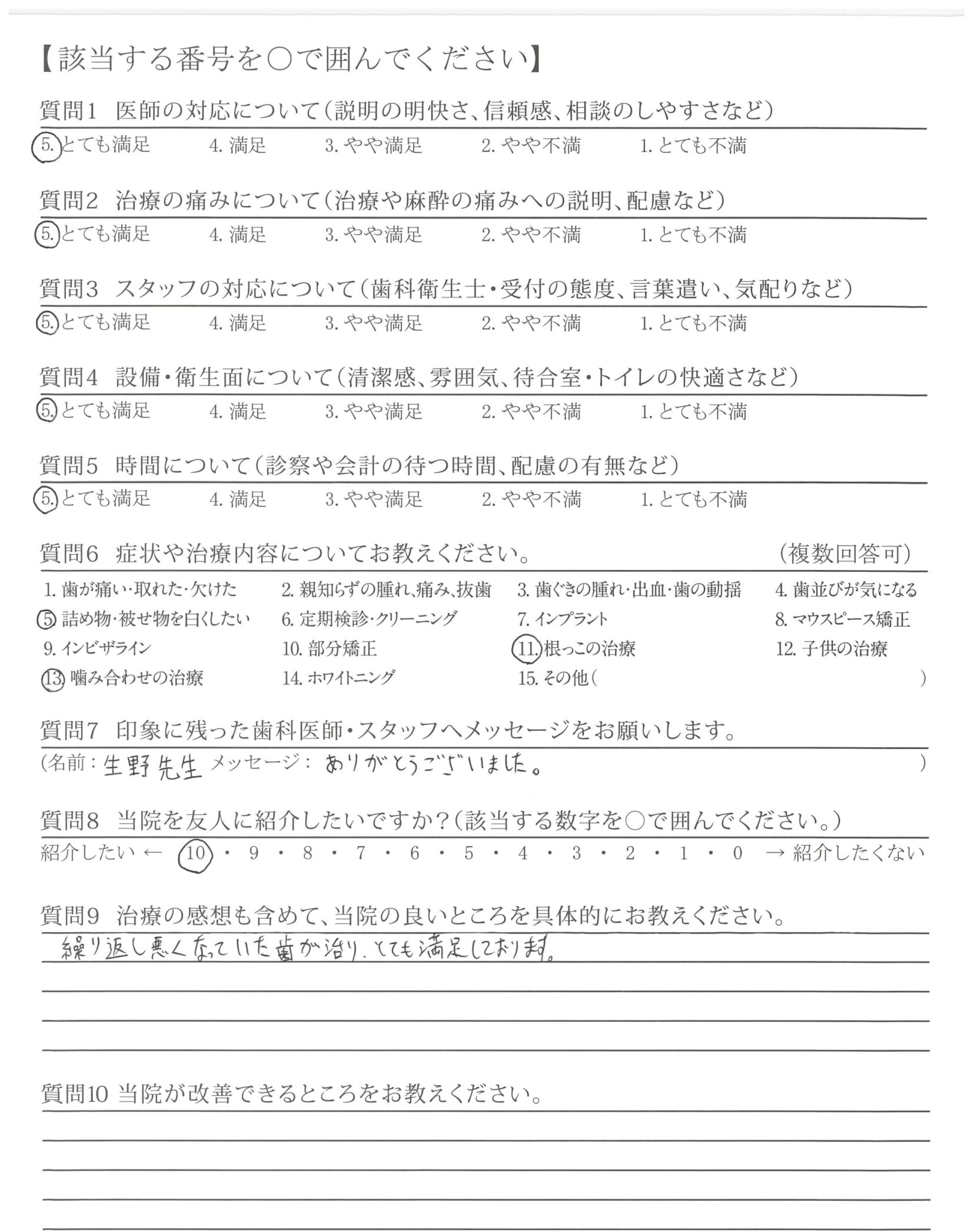 10年ぶりの歯科受診でしたが、安心感のあるご対応ありがとうございました。
